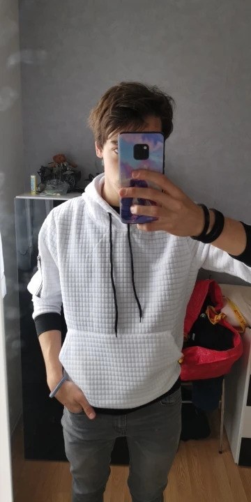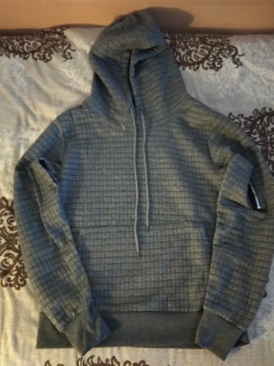 Кофта хорошая мягкая, целая , нитки по минимуму, но это не критично. Благодаря отзывам взял на рост 182 и вес 77 xxl, и все отлично подошло.