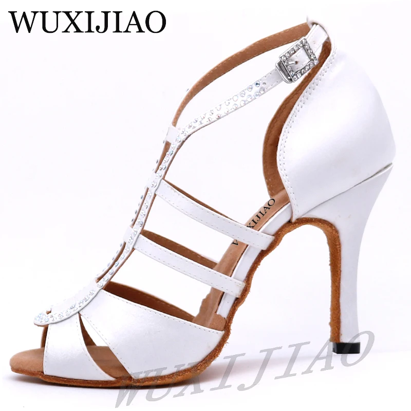 Туфли WUXIJIAO женские атласные для латинских танцев, обувь для сальсы, стразы, обувь для танцев, Каблук 5-10 см