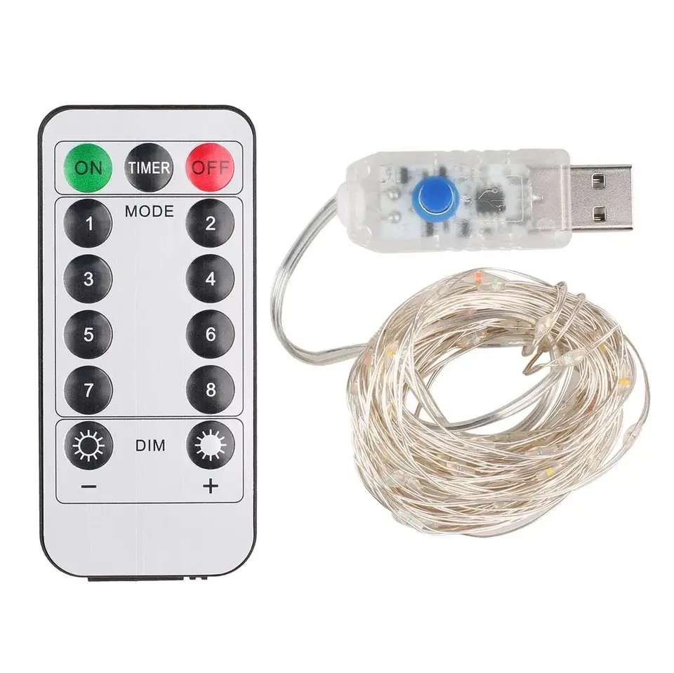 Светодиодный светильник 510 м 50100 светодиодный USB огни на дистанционном управлении серебряная проволока Волшебные гирлянды для свадьбы Рождество праздник декоративные светильники