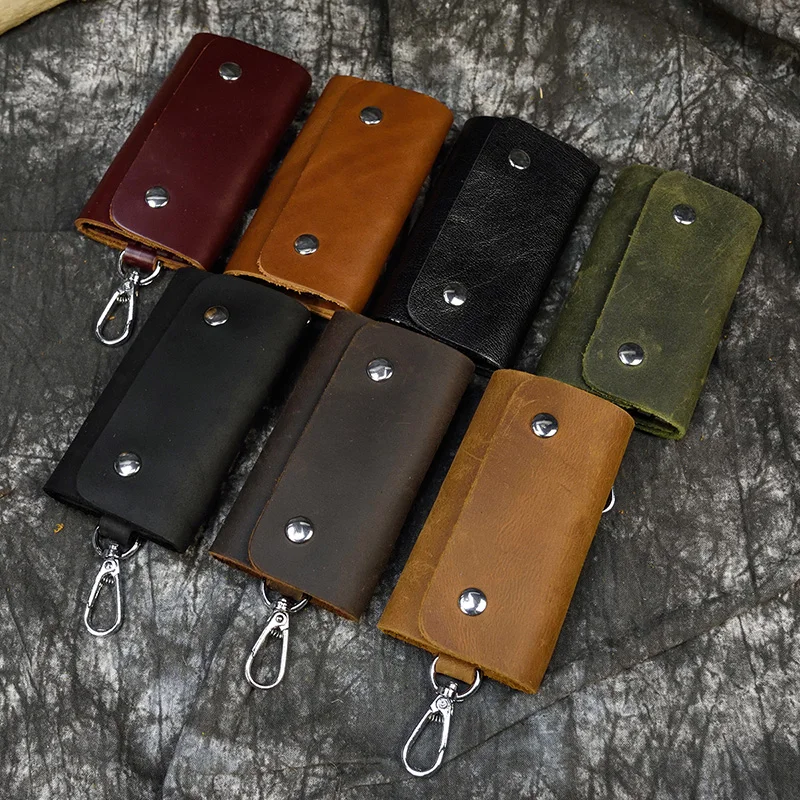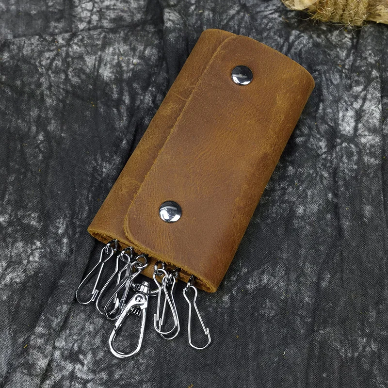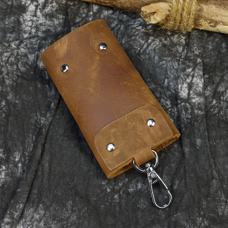 Винтажный брелок Crazy Horse из натуральной кожи для мужчин и женщин, ключница из воловьей кожи, чехол для автомобильных ключей бумажник ключница, кошельки