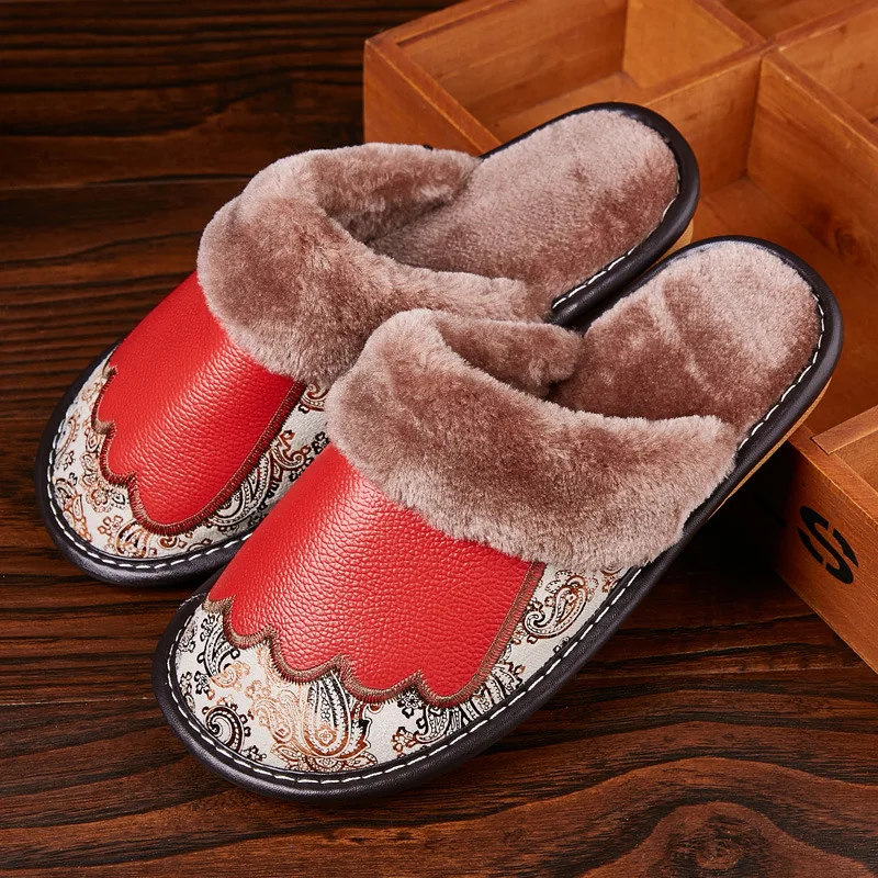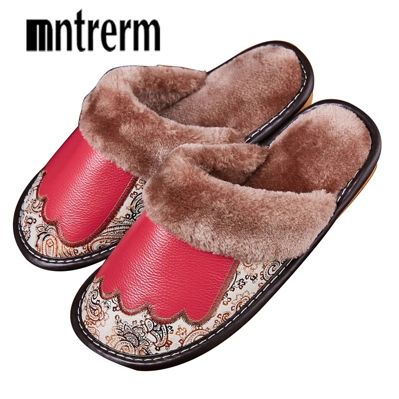 Женские домашние тапочки Mntrerm, теплые тапки из натуральной воловьей кожи, обувь для дома, зимняя обувь