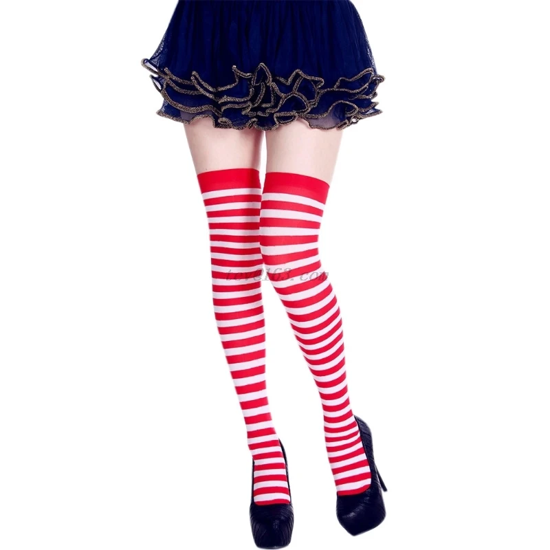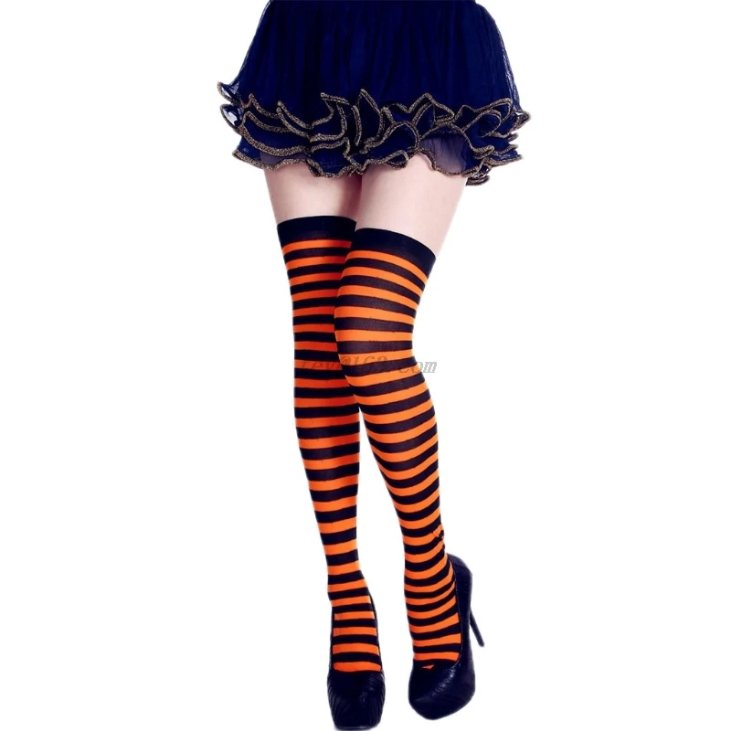 Женские длинные полосатые носки контрастного цвета с высоким голенищем для костюмированной вечеринки на Хэллоуин