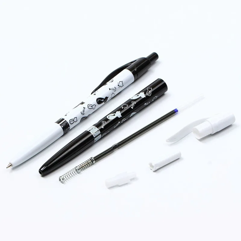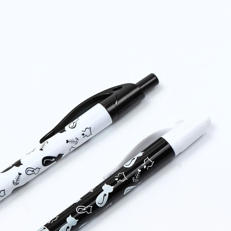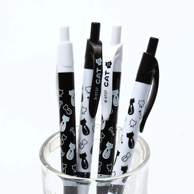 Ручка шариковая с милым черным и белым котом, 0,5 мм, синяя, 4 шт.