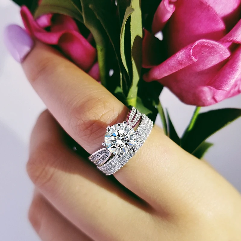 Набор свадебных колец для невесты серебристого цвета 3 в 1, обручальное кольцо для женщин, обручальное свадебное модное ювелирное изделие на палец, Черная пятница R4630