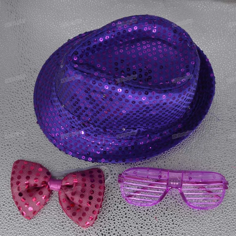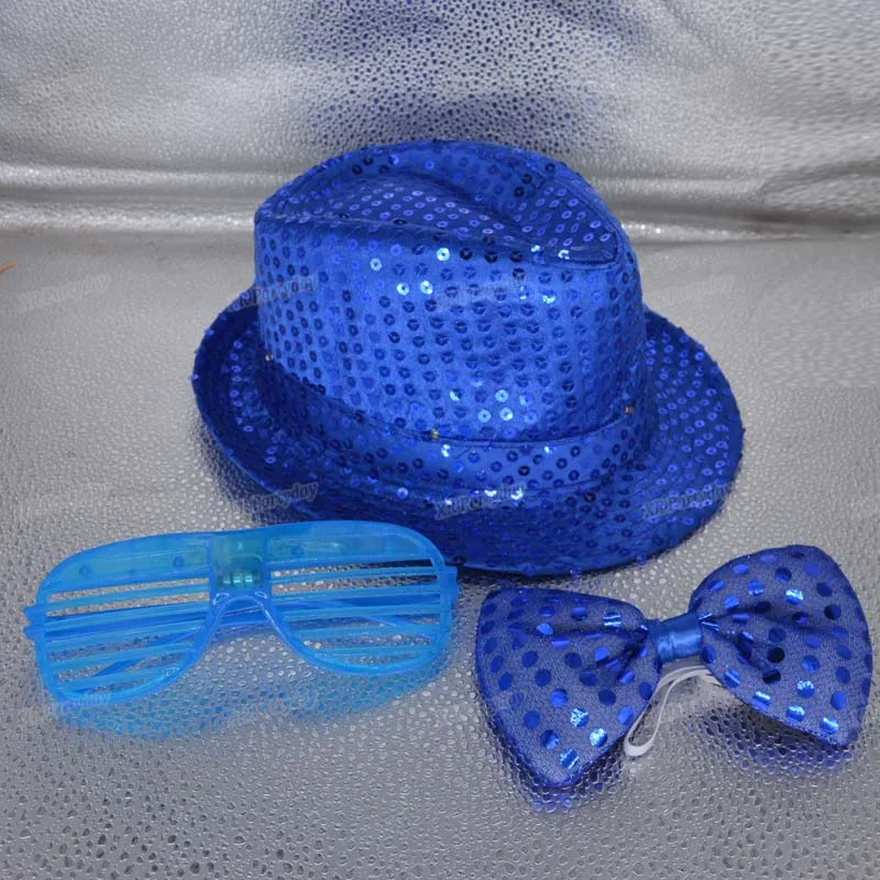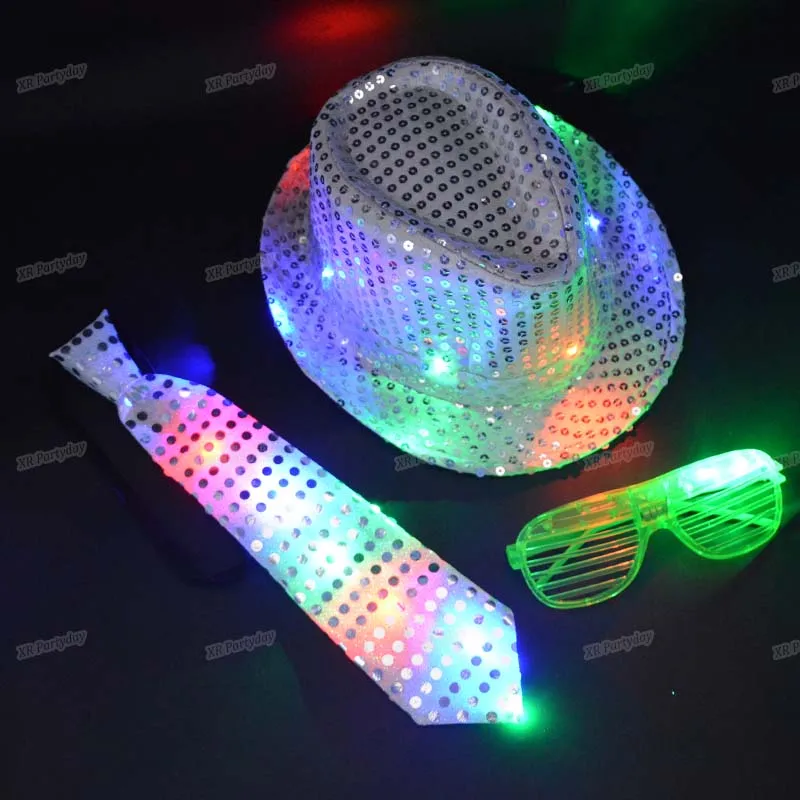 Светящиеся блестки, стиль хип-хоп, шляпа, светящиеся очки, галстук, светодиодный подарок на вечеринку, косплей, день рождения, свадьбу, фестиваль