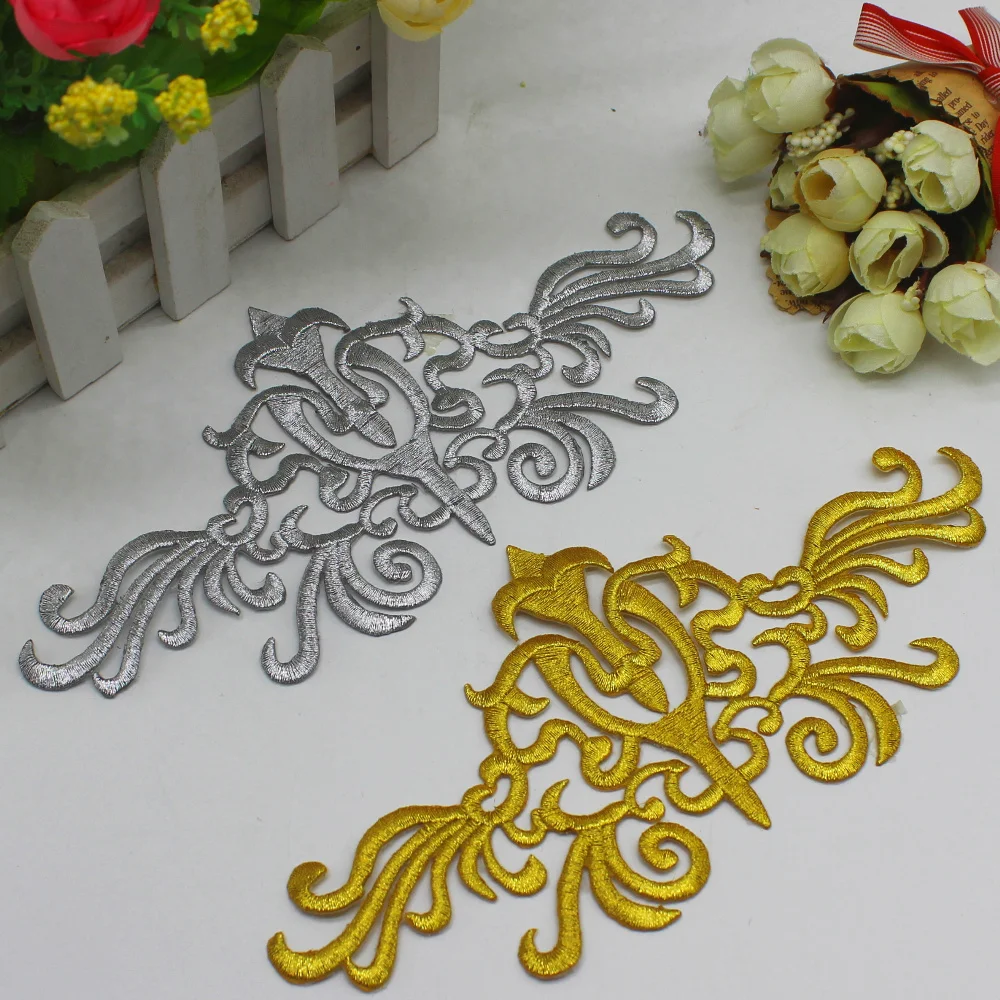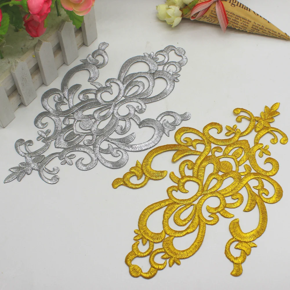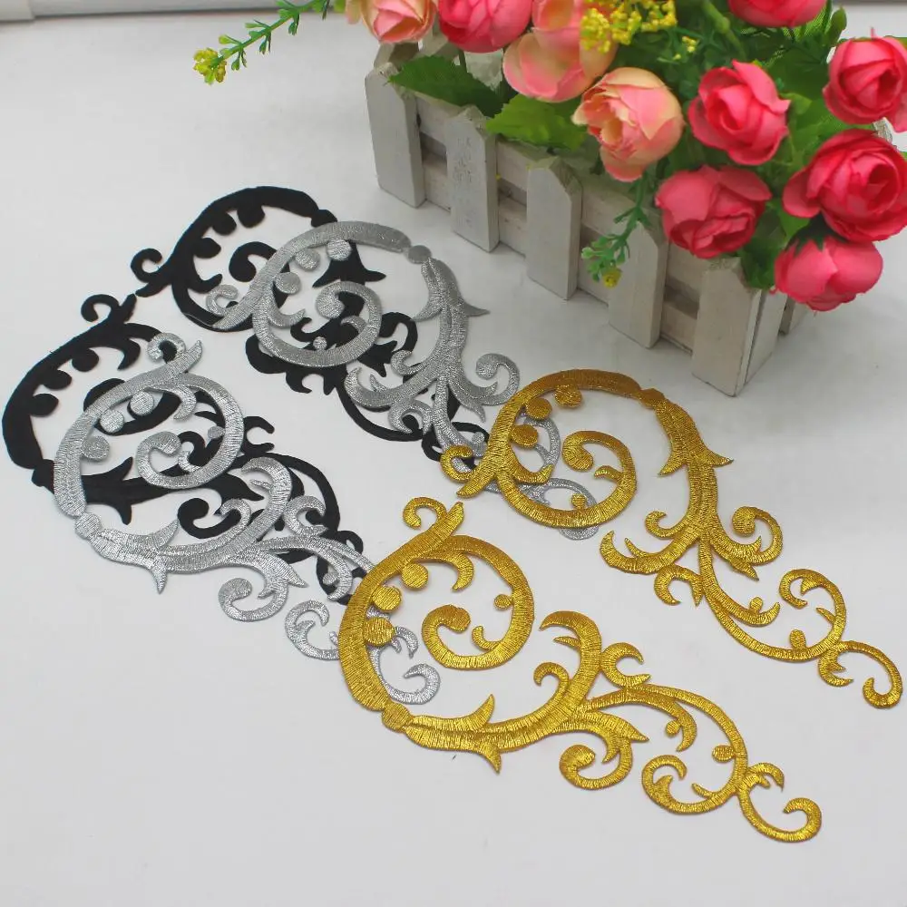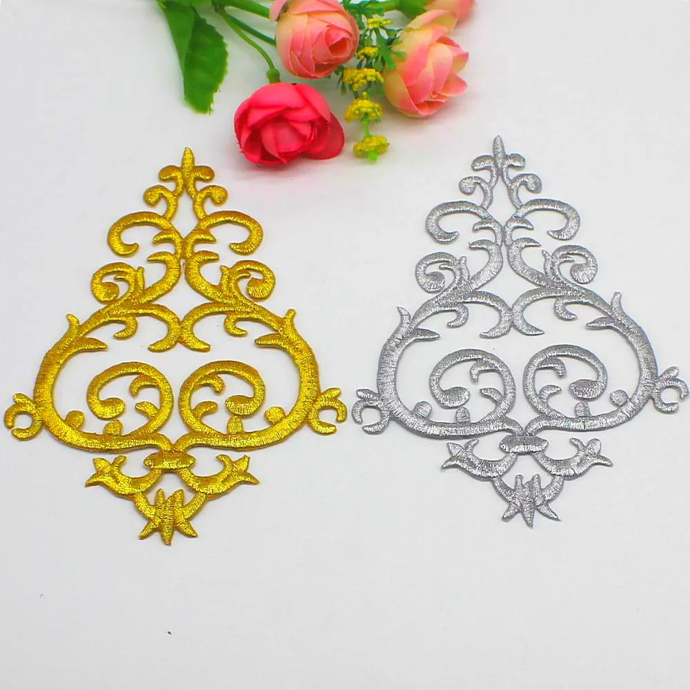 Термоклейкие Аппликации, золотые вышитые нашивки, украшения для вечерние, винтажные металлические костюмы для косплея, цветочные нашивки сделай сам