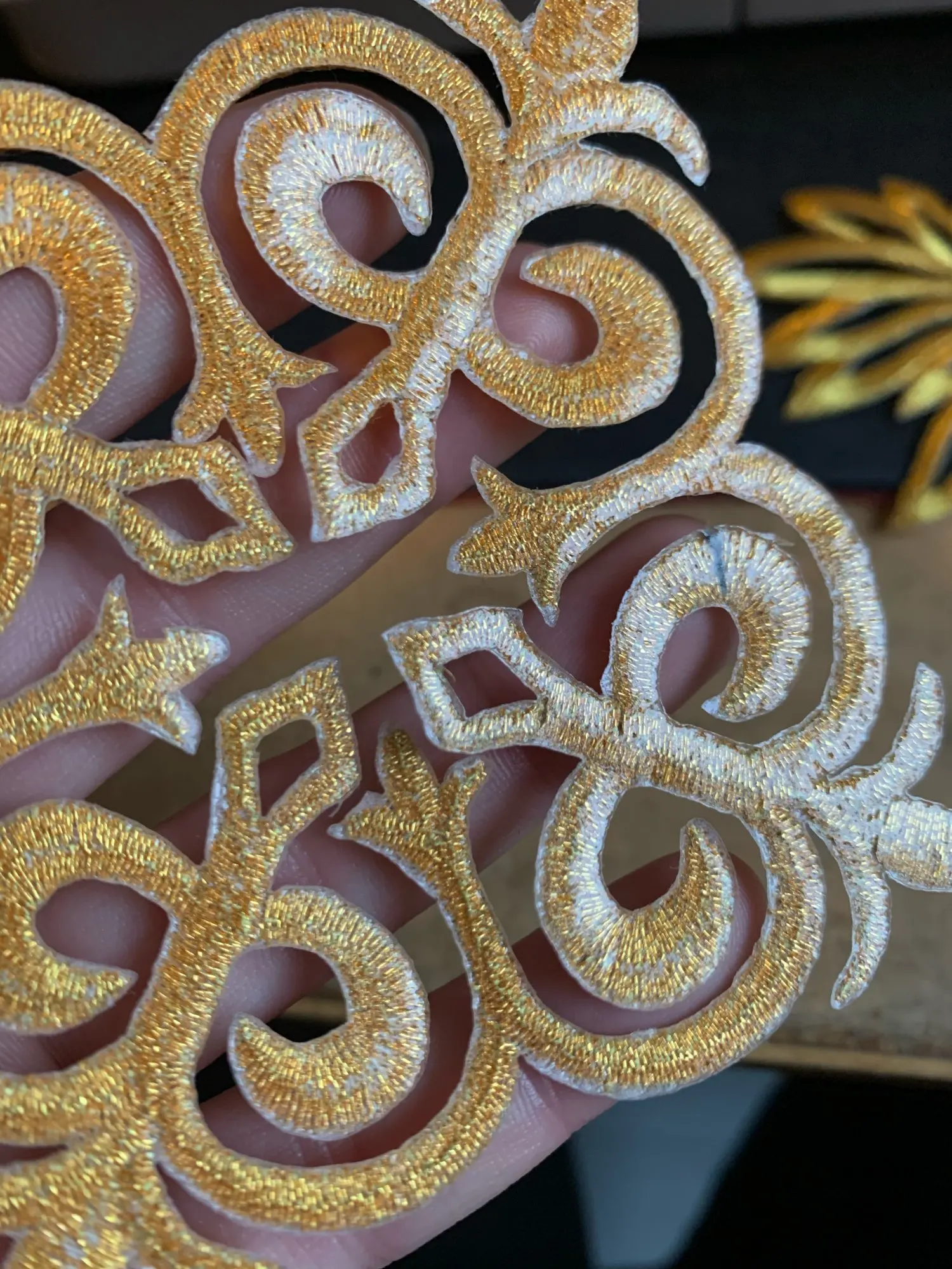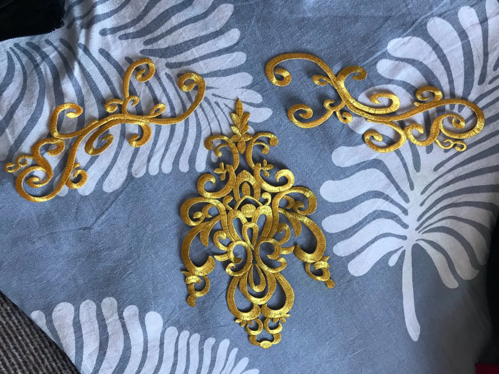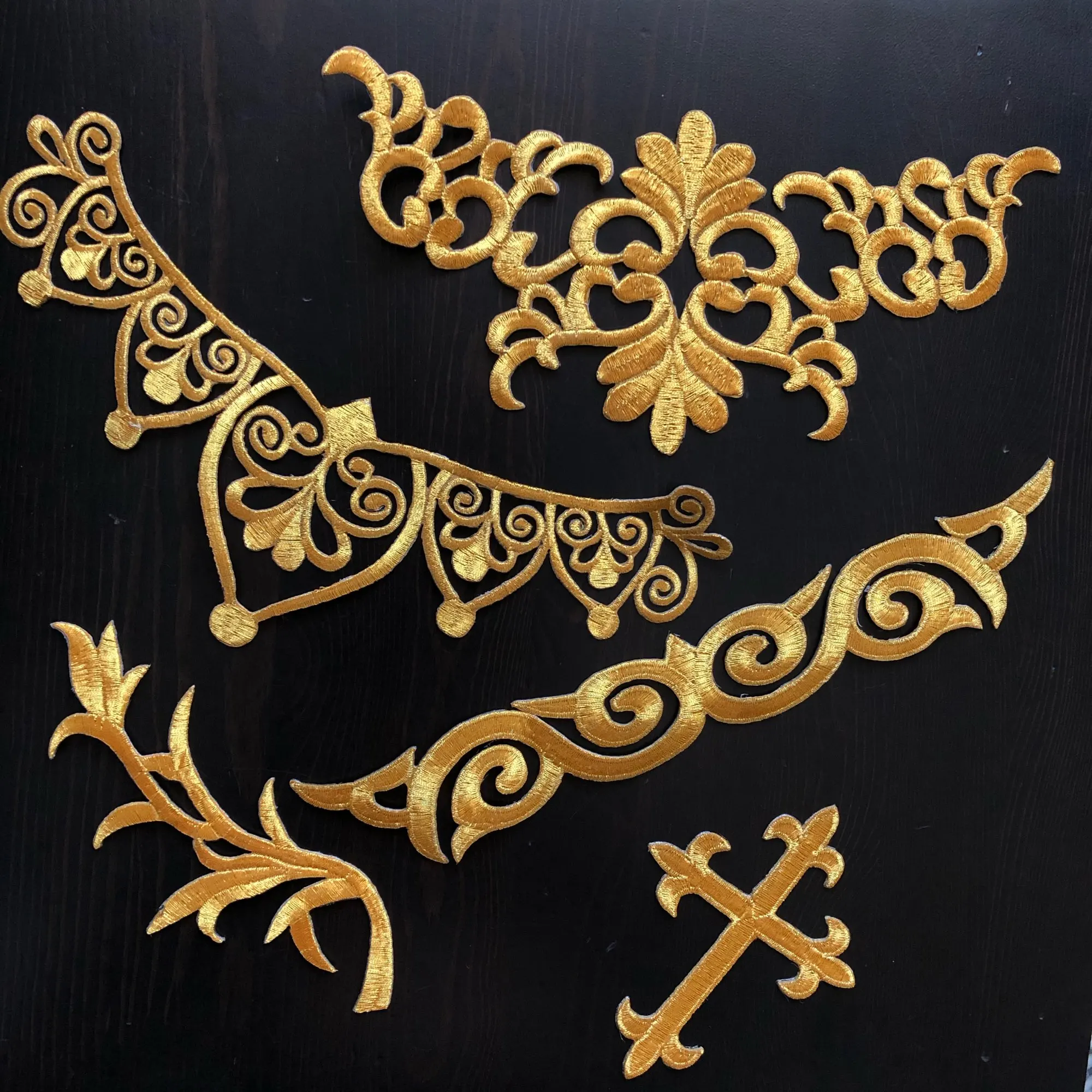 Термоклейкие Аппликации, золотые вышитые нашивки, украшения для вечерние, винтажные металлические костюмы для косплея, цветочные нашивки сделай сам