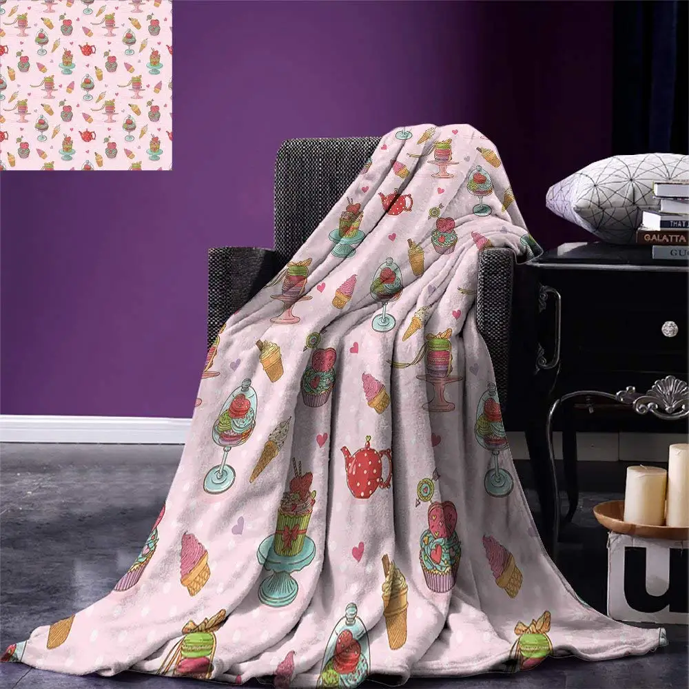 Плед Ice кремовые украшения, ретро, для кексов, чайников, печенье, конфеты, в горошек, с винтажным принтом для кухни, теплое, из микрофибры