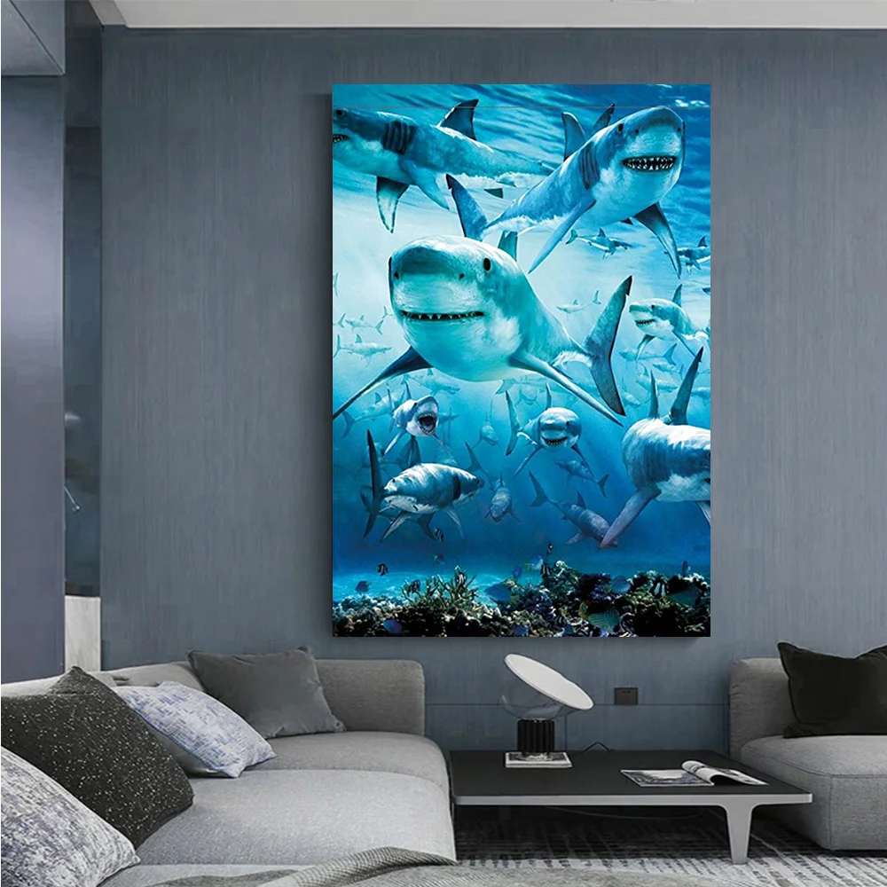 Акула группа DIY алмазная живопись Полный Круглый морским обитателям, Акула, алмазная вышивка морской Алмазная мозаика с изображениями животных камни в форме ромба