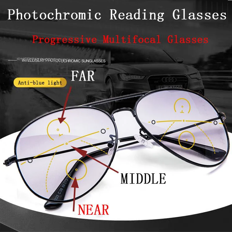 Фотохромные очки для чтения, многофокальные линзы Хамелеона, синий ...