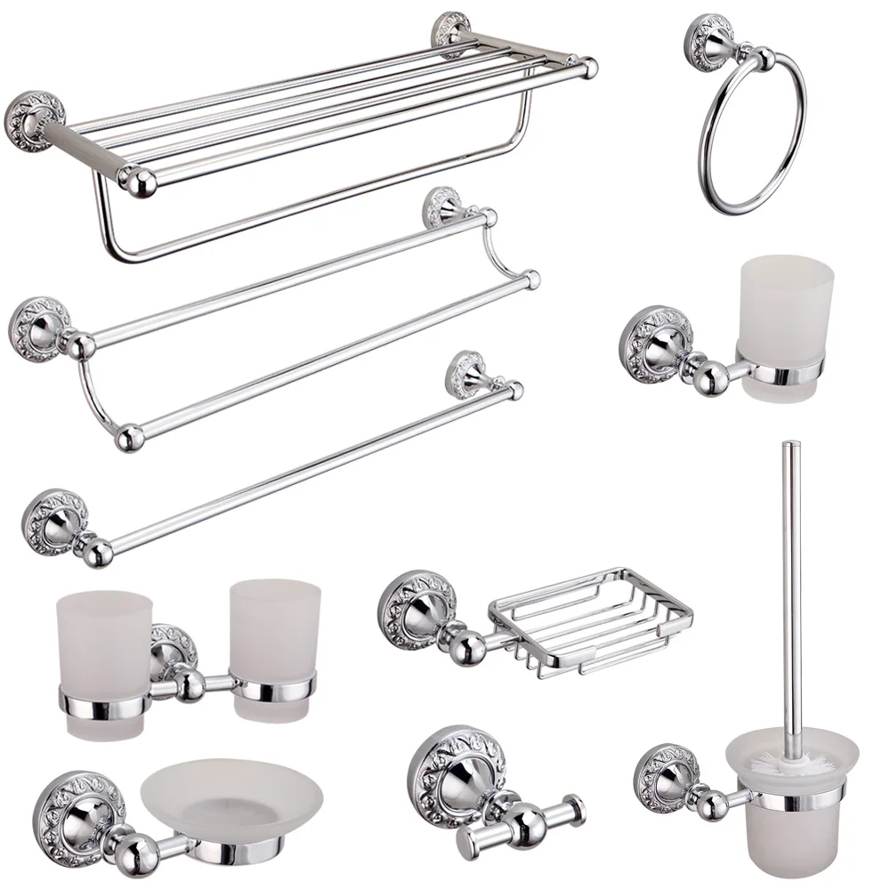 AUSWIND резной двойной держатель для полотенец 30405060 см, Серебряный держатель для туалетной бумаги, зеркальная отделка поверхности, наборы оборудования для ванной комнаты