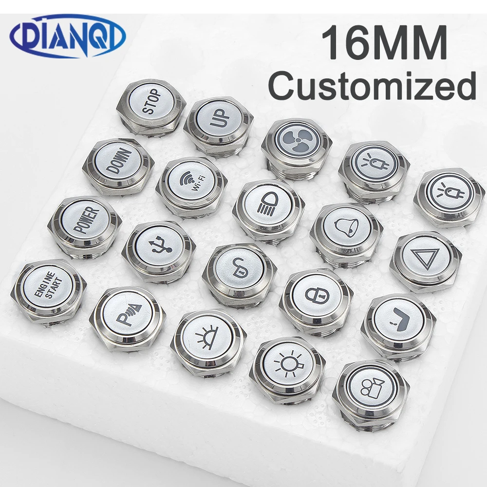 Металлическая кнопка для настройки, 16 мм, кольцевой переключатель, плоская, круглая фиксация, мгновенное направление, вверх и вниз, мощность