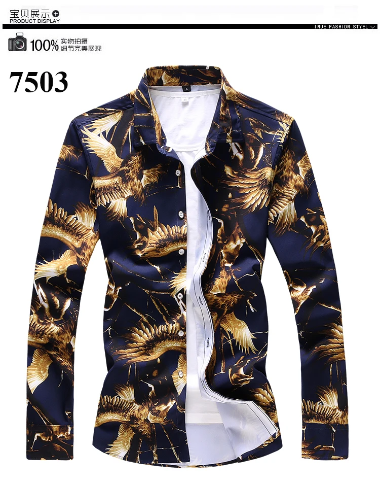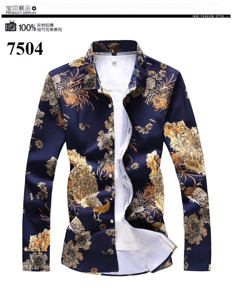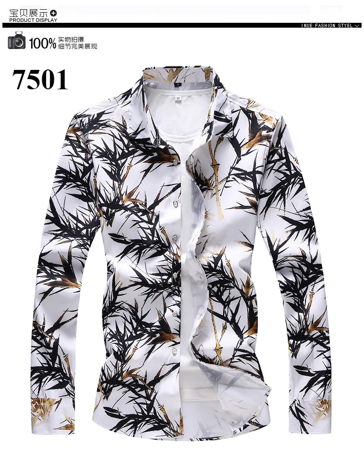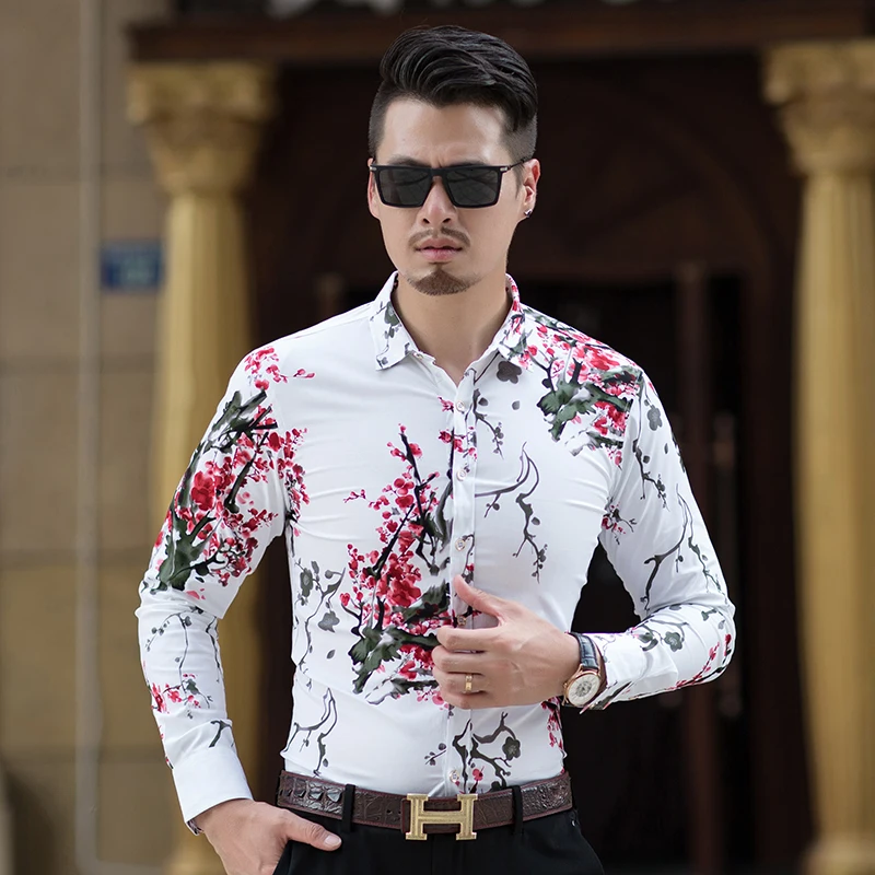2021 Осенняя Новая модная мужская рубашка, приталенная рубашка с длинным рукавом и цветочным рисунком, Мужская одежда, трендовые мужские повседневные рубашки в цветочек размера плюс 7XL