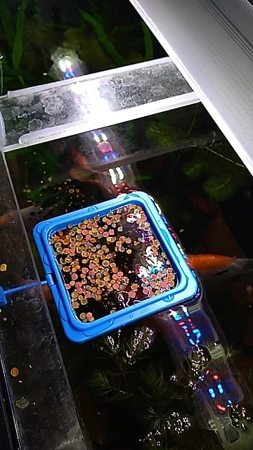 Действительно классная вещь, плавающая подача не распространяется на весь аквариум, рыбки едят ее мягко