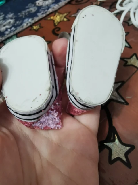 Очень маломерят! Никакие не 7,5 сантиметров. На ножку 5 см еле налезли и это учитывая то, что у нас кукла с мягкими ногами, и то еле впихнули. Товар сшит хорошо, подошва жёсткая, но не рекомендую, малы. Будут теперь валяться без дела.