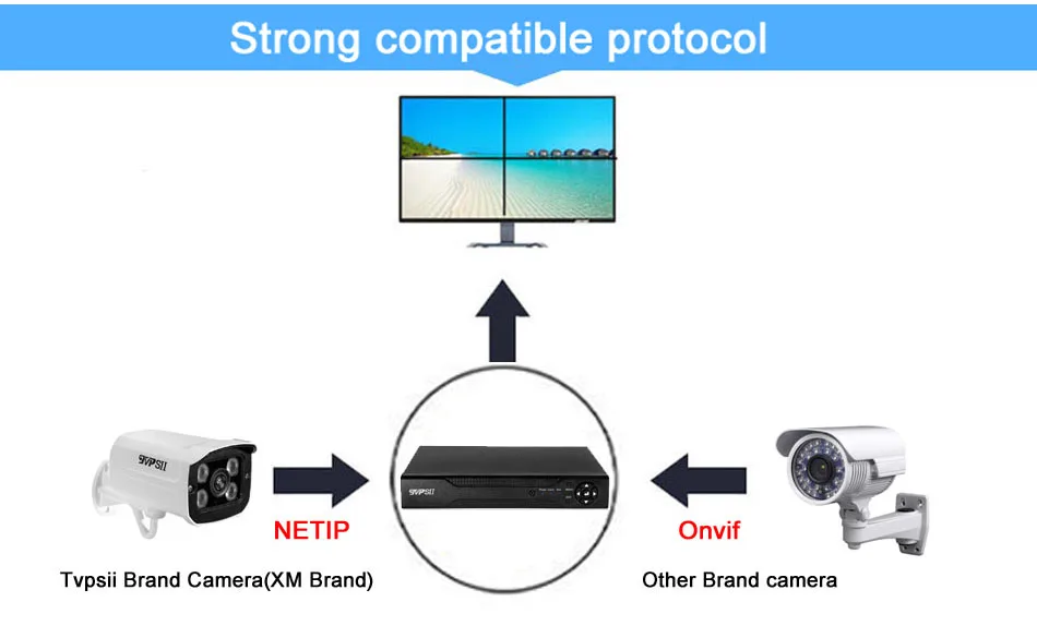 О:Этот сетевой видеорегистратор имеет протокол NETIP (XM:Xmeye и система ICsee), протокол onvif и т. д., поэтому, если ваша IP-камера, Wi-Fi камера, IP-камера PTZ-это бренд Tvpsii, ip-камера марки XM и других брендов onvif, работает хорошо.