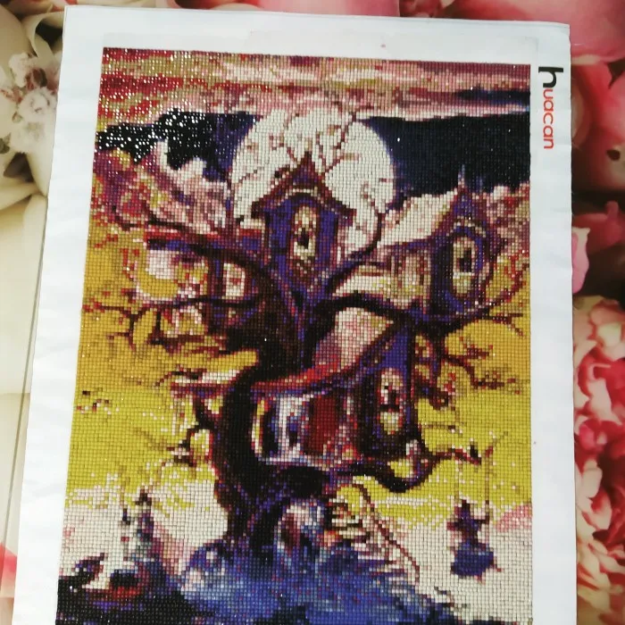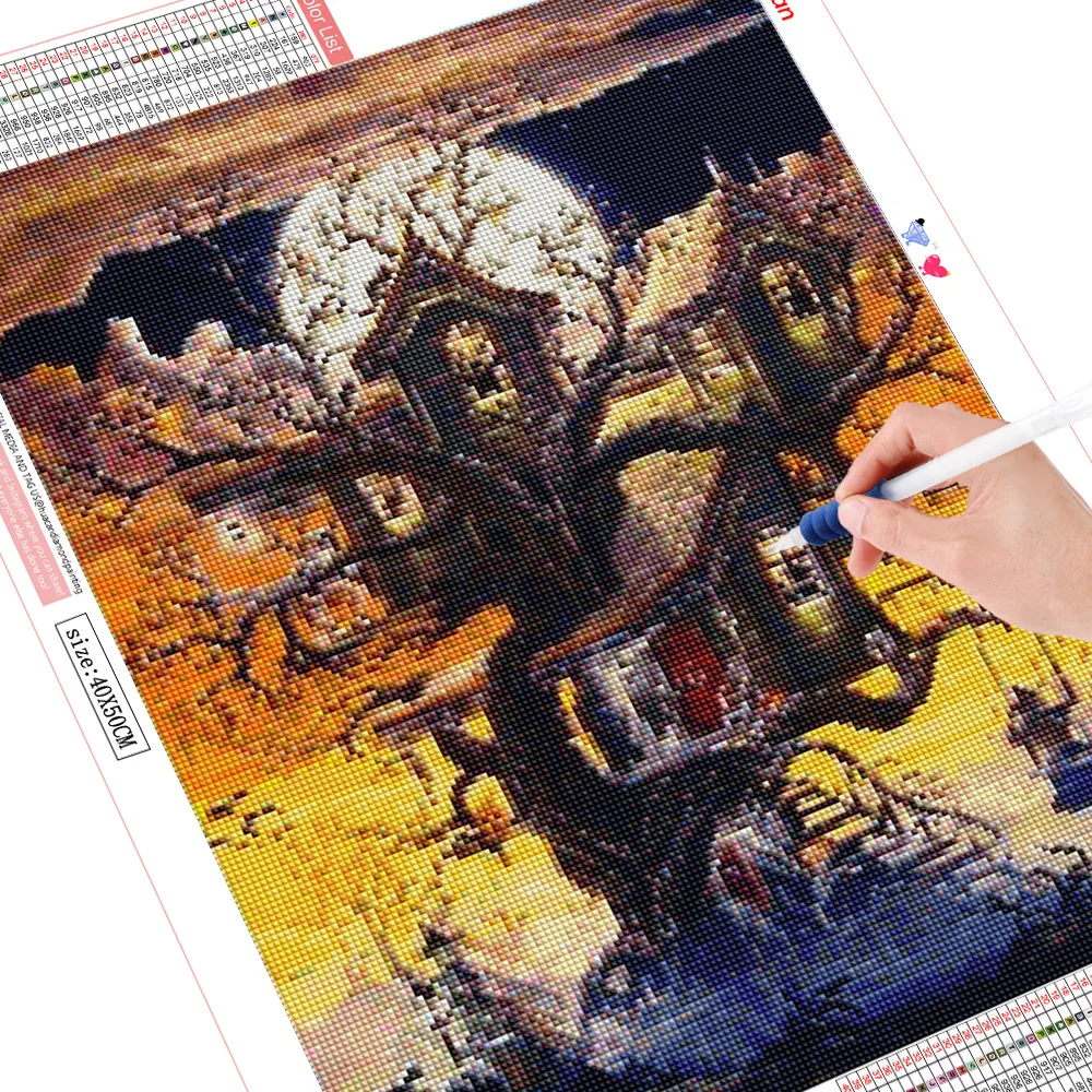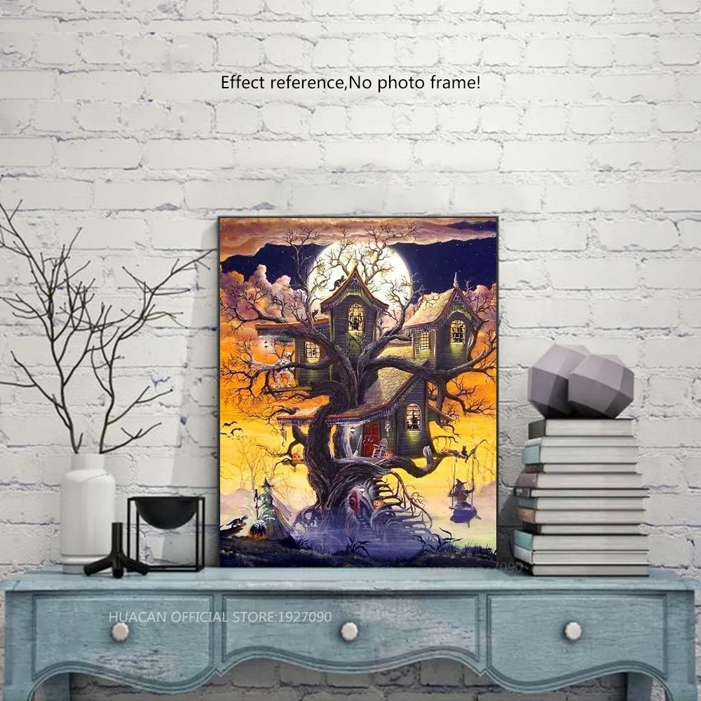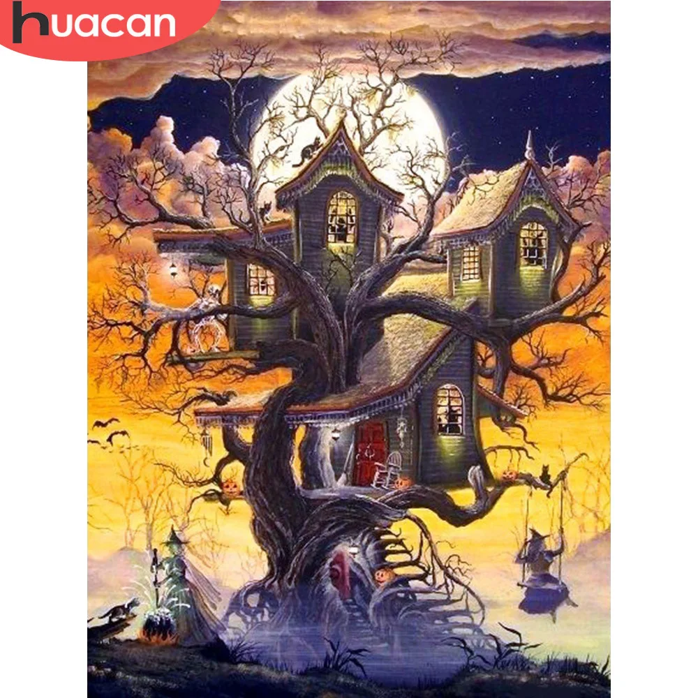 Хуакан Хэллоуин Алмазная краска ing Tree DIY полностью квадратная дрель Алмазная вышивка ведьмы краска с бриллиантами пейзаж