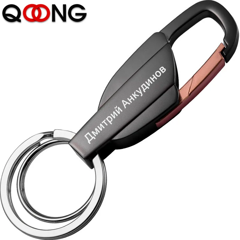 Мужской металлический брелок QOONG, с двумя кольцами, на заказ