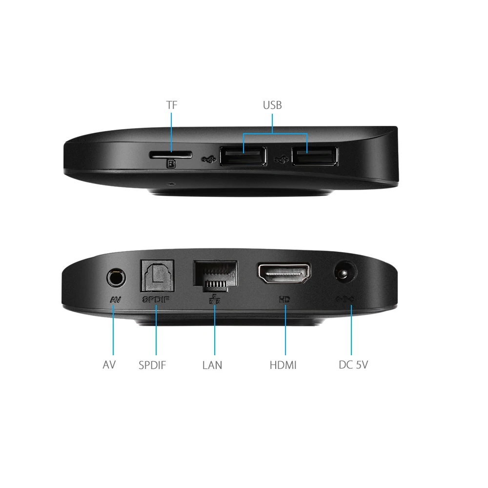 -С двумя камерами, процессор Rockchip RK3229 Cortex процессор до 2,0 ГГц-ОЗУ: DDR3 2 Гб, ПЗУ: eMMC Flash 16 Гб-ОС Android 7,1-Поддержка H.265, 4K x 2K, HDMI 2,0, 10 бит;-IEEE 802.11b/g/n, 10/100 Мбит/с;-Поддержка 2,4G Wifi, поддержка s DLNA