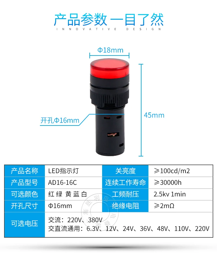 Индикатор питания 16 мм, фонарь, светодиодный сигнал, 24 В, 220 В, 380 В, Пилотная лампа сигнала, красный, желтый, зеленый, синий, белый