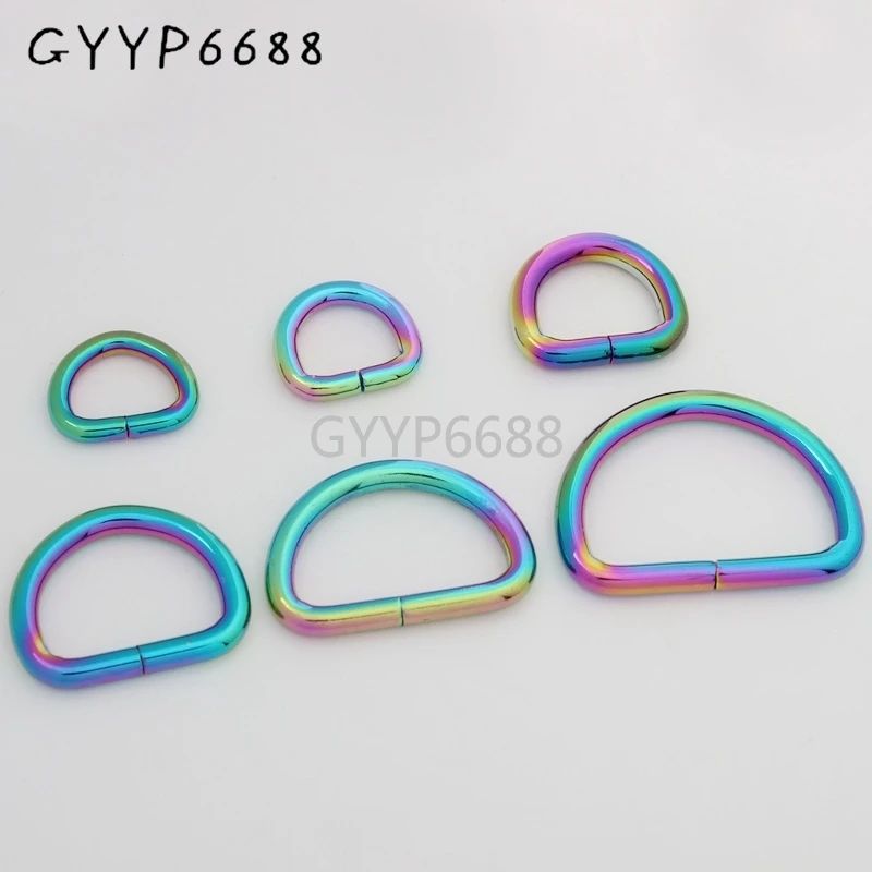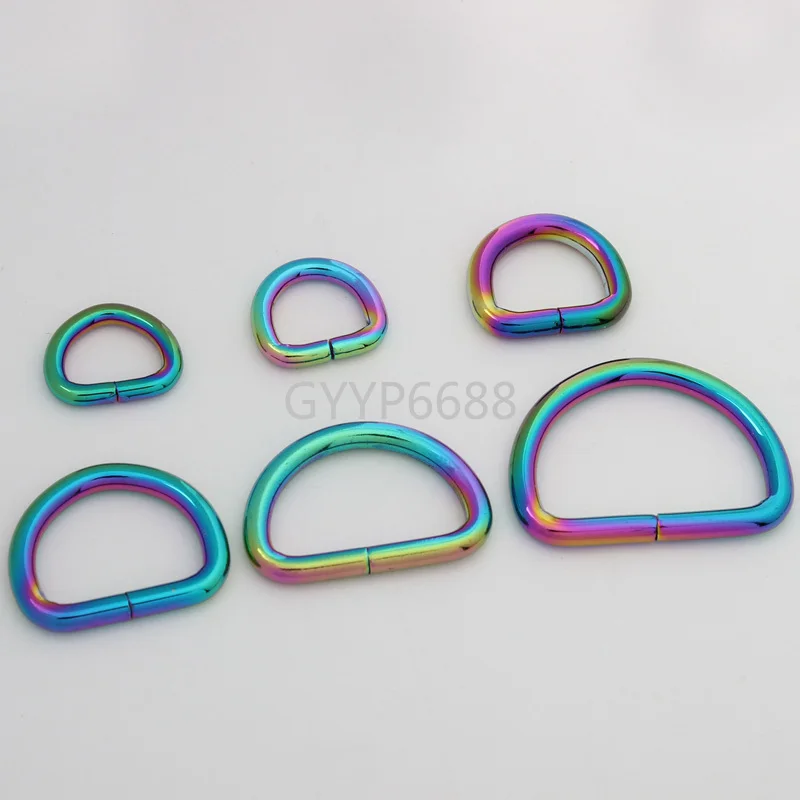 Радужное открытое d-образное кольцо, пряжка для ремня, металлическое D-образное кольцо для сумок, Размер 10-30-100 шт., 7