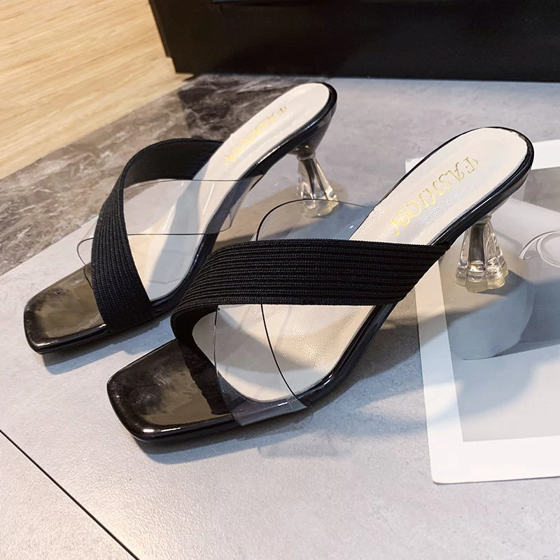 Женские босоножки на высоком каблуке, весенне-летние, черные