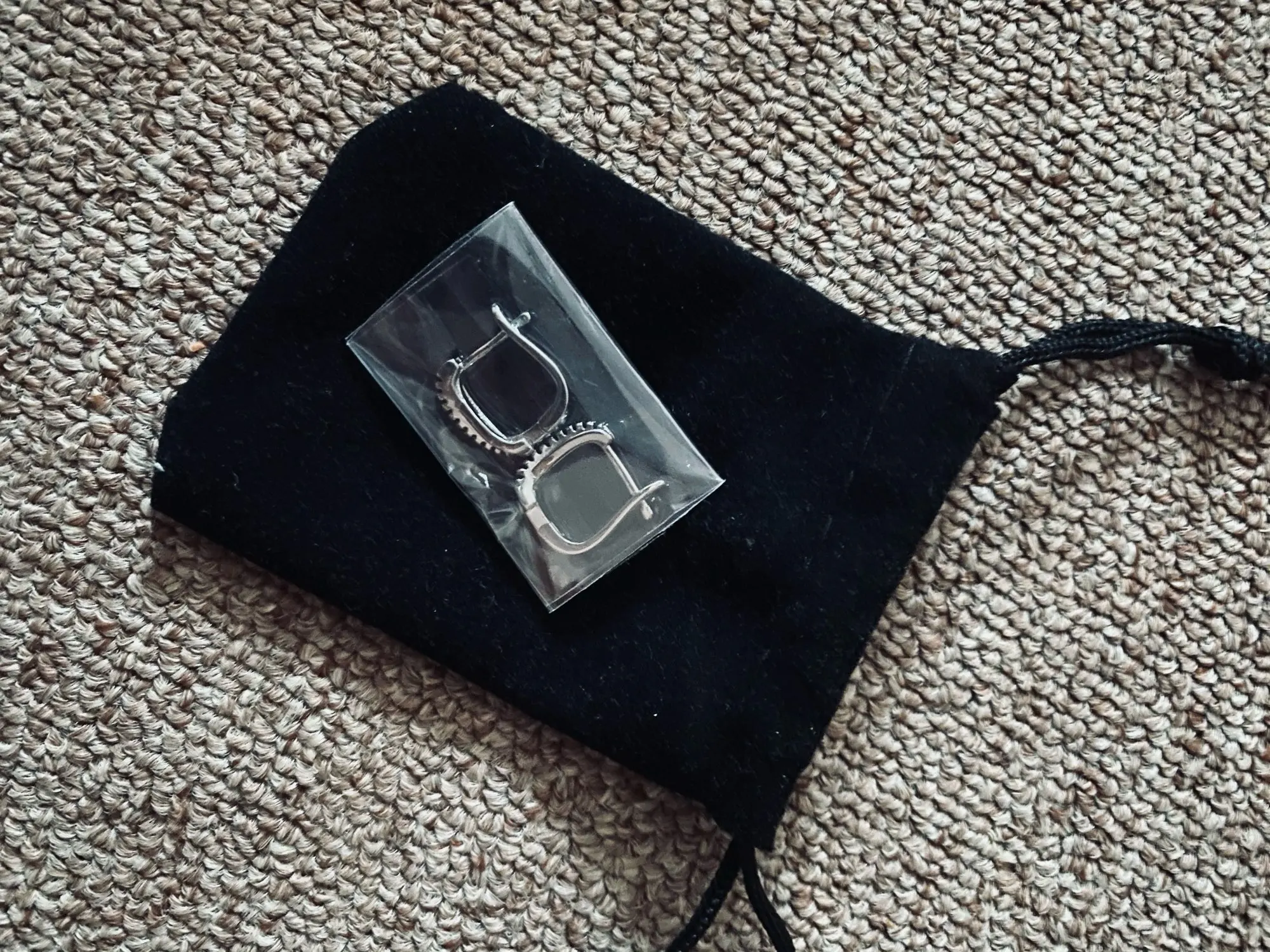 пришло быстро в красивом бархатном мешочке. серёжки маленькие, красивые, изящные. застёжка не очень надёжная. посмотрим как будут в носке.