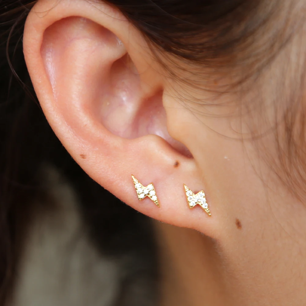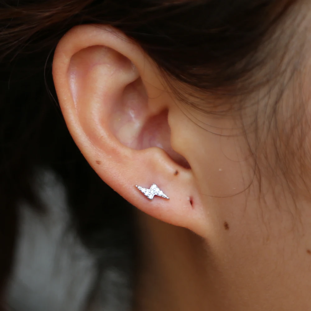 Серьги-гвоздики в виде молнии The Ear Stylist из стерлингового серебра 925 пробы с фианитами, крутые ювелирные украшения из серебра 925 пробы, сверкающие мини-гвоздики