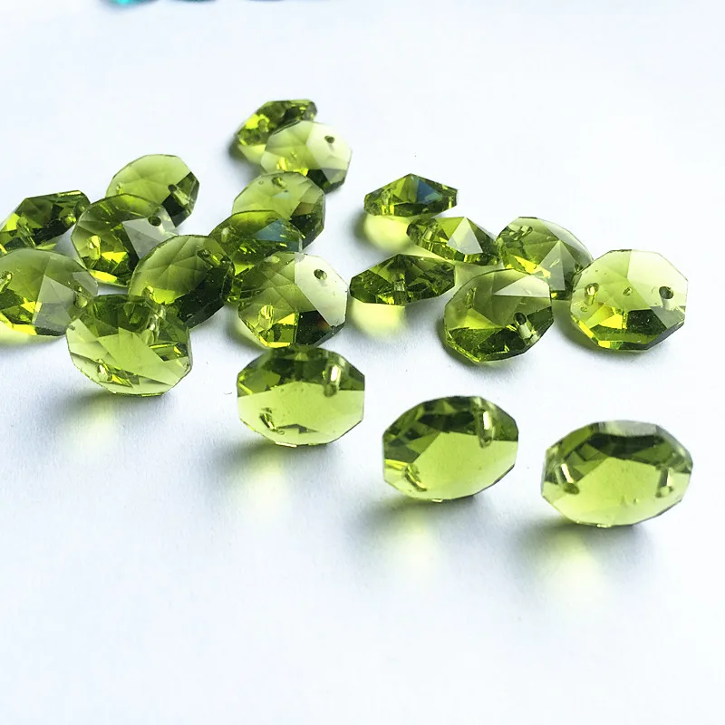 100 шт. OliveColor Необычные 14 мм Хрустальные Восьмиугольные аксессуары для люстры в двух отверстиях (Бесплатные Кольца) Diy Стеклянная нить гирлянда бусины