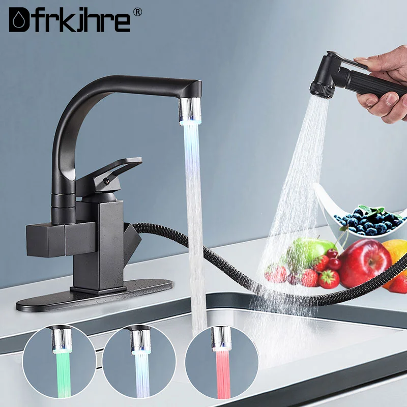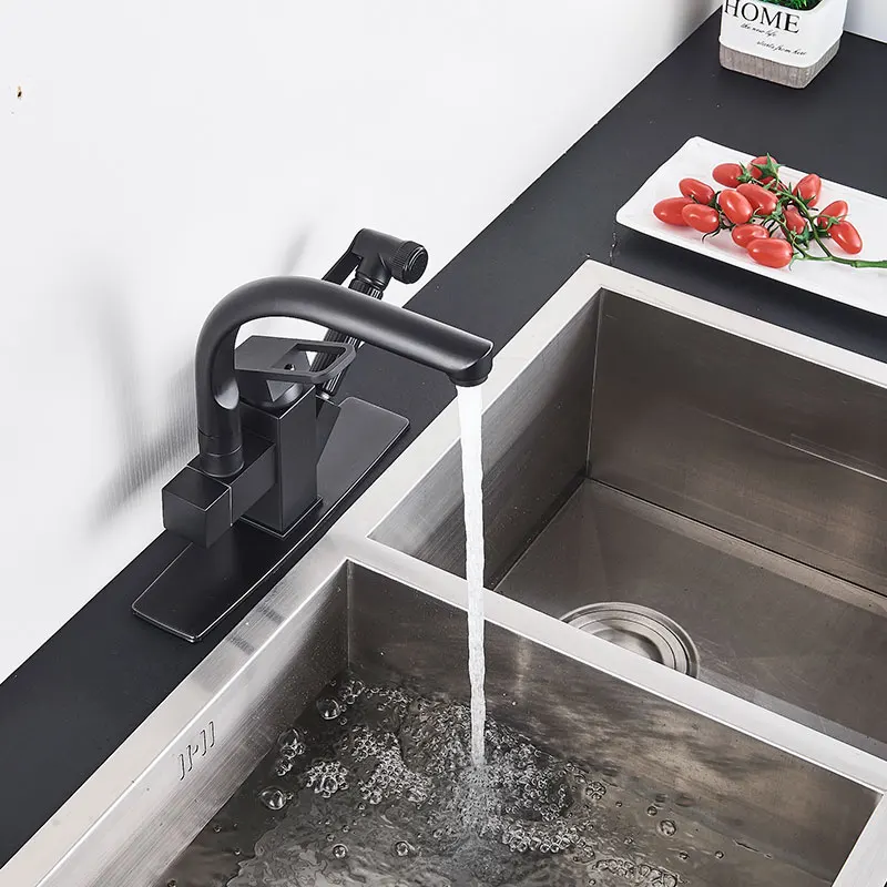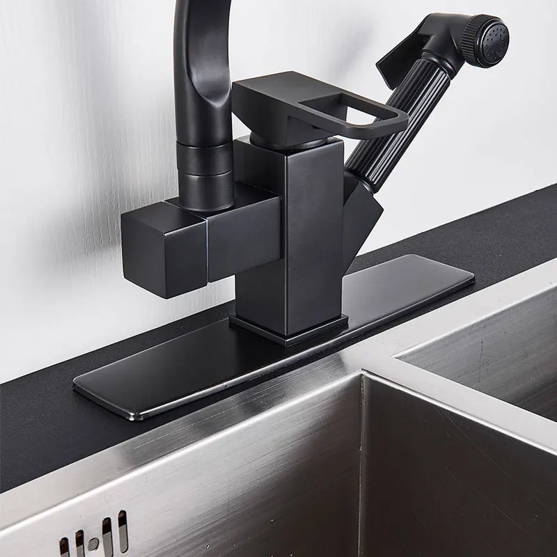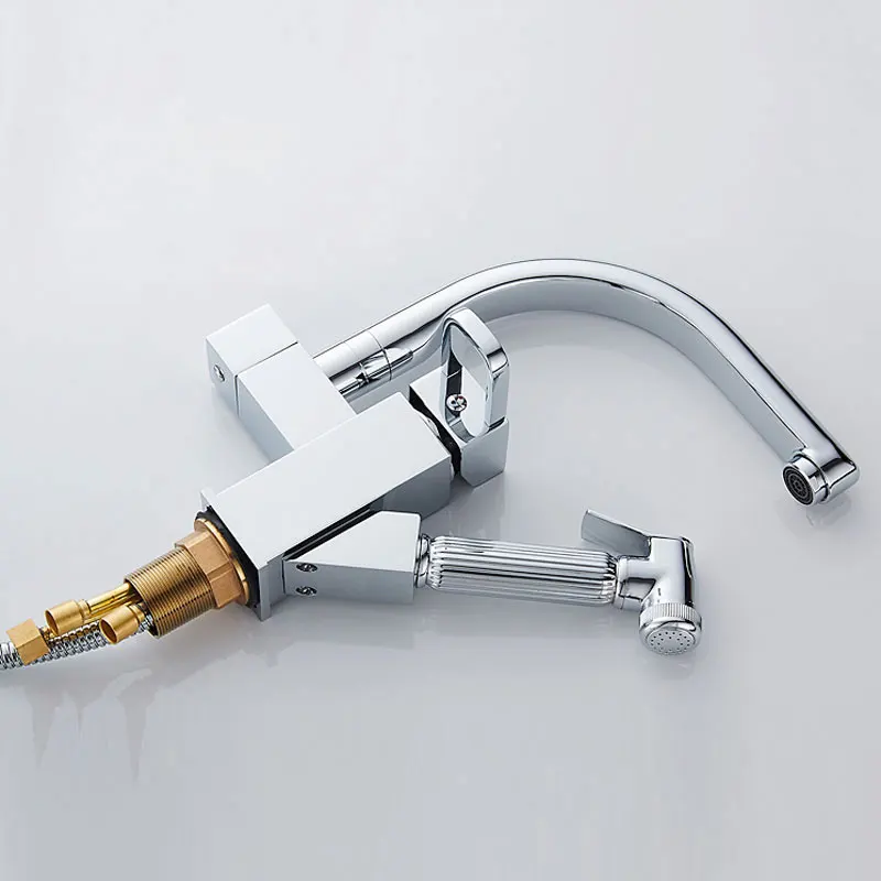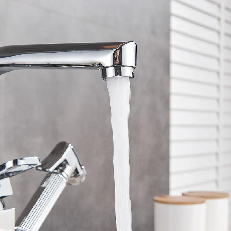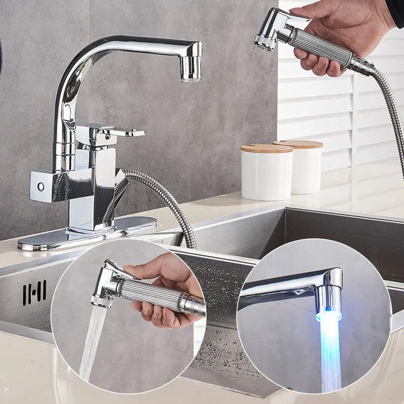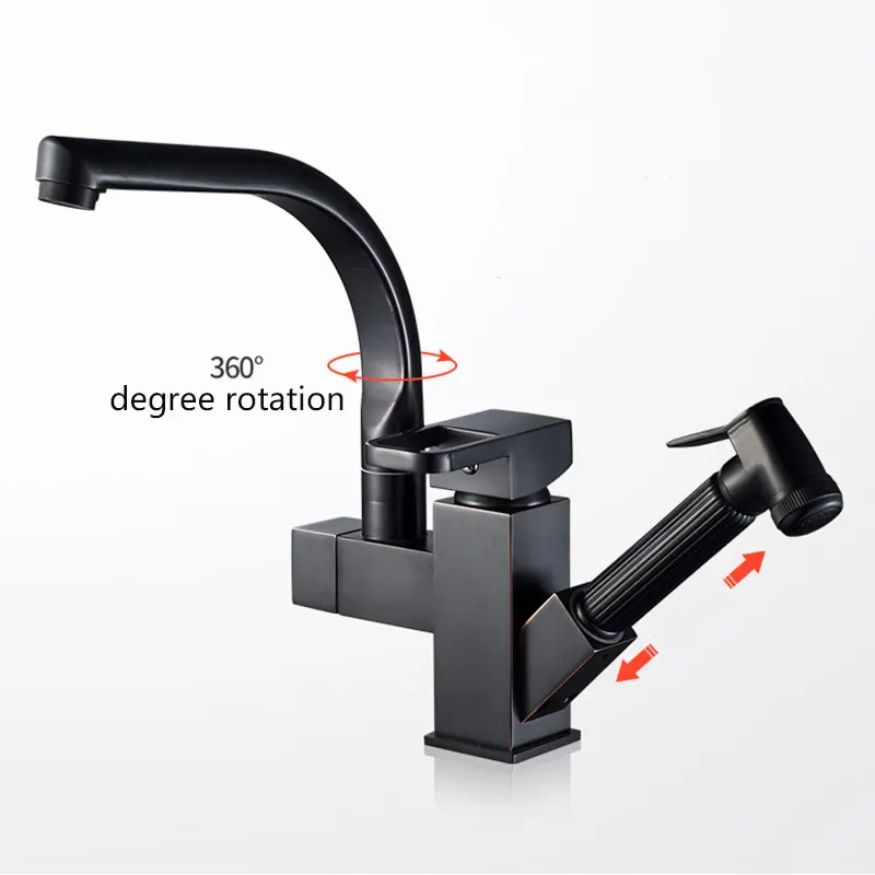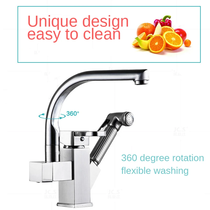 Выдвижной хромированный кухонный смеситель, кран с двойным носиком для горячей и холодной воды