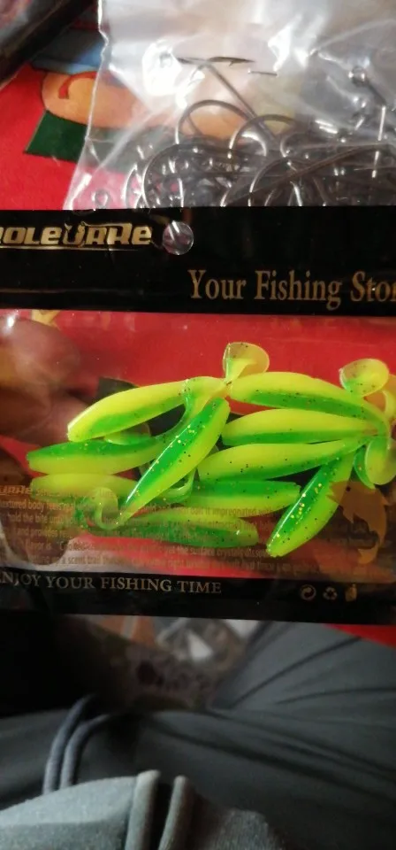 заказ шёл полтора месяца. упакованы хорошо, описанию соответствуют. пластик не вонючий. по количеству всё чётко. как покажут себе в деле отзыв дополню. думаю с джиг головкой на 5 гр. самое оно будет. больше не пойдёт, слишком мелкие сами по себе.