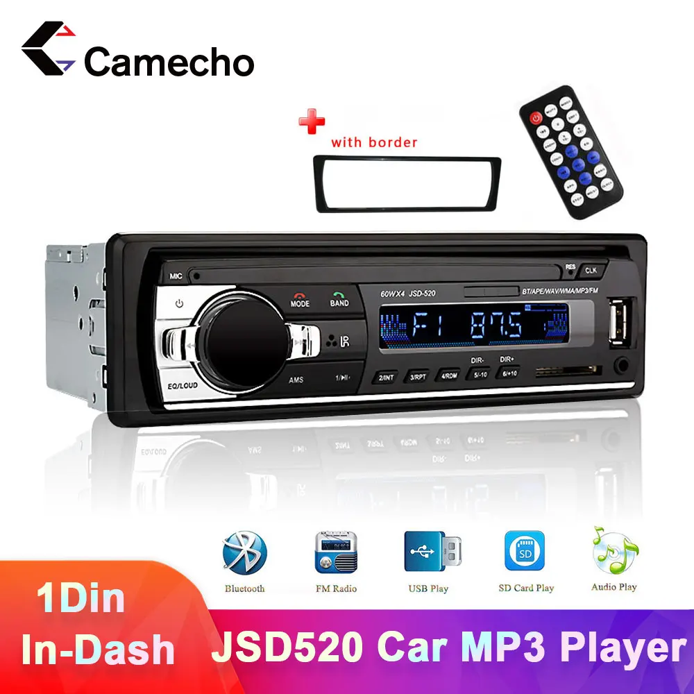 Camecho JSD-520 12 в Bluetooth Авторадио Стерео In-dash1 din FM Aux вход приемник SD USB автомобильный MP3 мультимедийный плеер(ISO и 12 Pin интерфейс, две модели случайной доставки)
