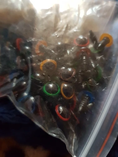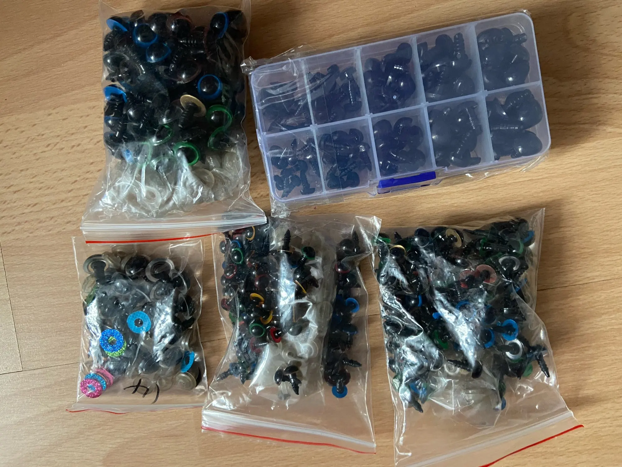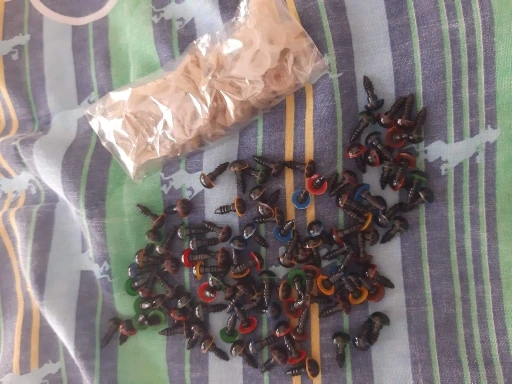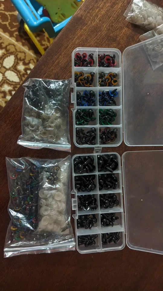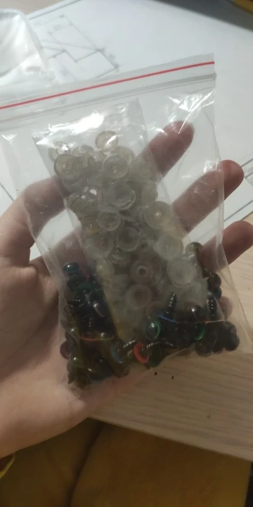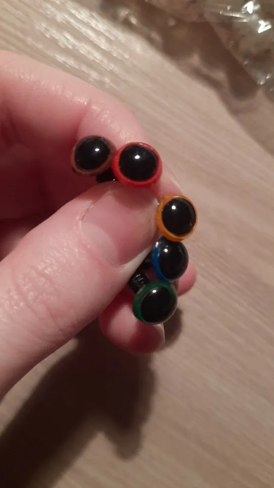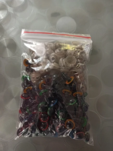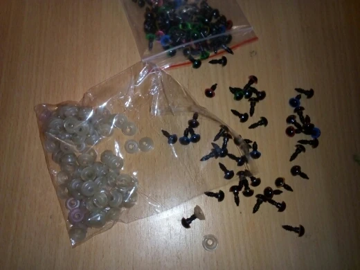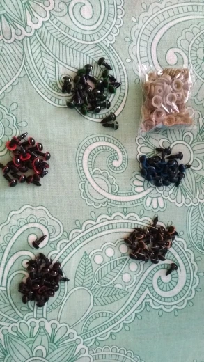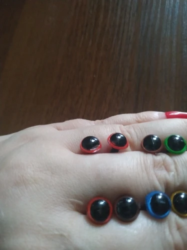 Неплохие глаза, получилось всего 102 шт, все парные. Красных на одну пару больше и почему-то среди них больше всего брака. Как и ожидалось, все использовать не получится, наплывы и сколы убрать не выйдет, а шероховатость можно будет убрать полировкой. В целом довольна, такая фурнитура для начинающих подойдет.