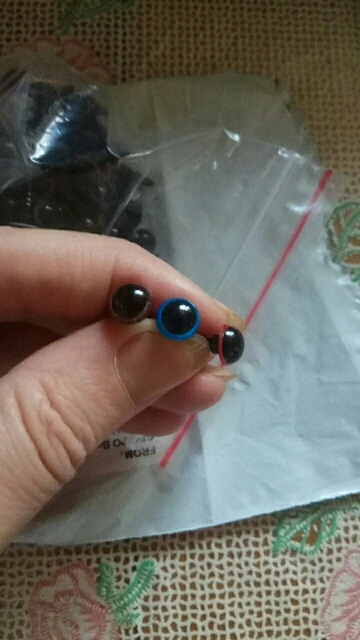 Глазки отличаются по размеру, нужно подбирать пару, но это может даже плюс. Качество не очень хорошее, много глазков с какими-то включениями, или не прокрашены с краю. Из 100 штук, 10 не смогу использовать, ну, соответственно, и плюс парные к ним... Заказ пришел вовремя.