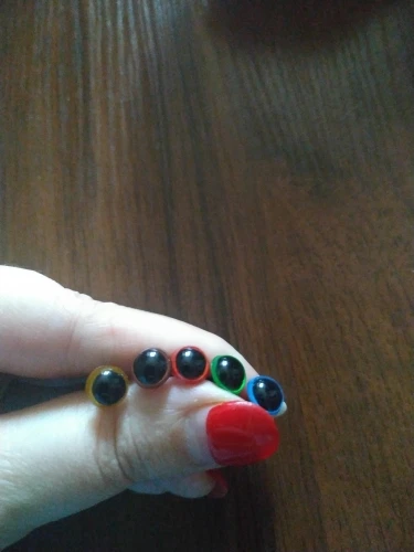 все как и в описании. 100шт. в комплекте,красных глаз конечно достаточно, они обычно мало применимы. но и остальные тоже есть и жёлтые и зелёные и голубые. размеру соответствуют.