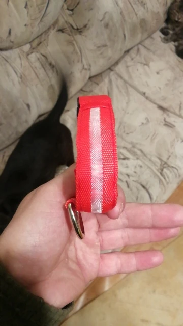 Хороший ошейник, светит добротно, но если вы хотите использовать его как самостоятельный ошейник, то для этого он не подходит. При натяжении за колечко обрывается светодиод. А для того чтобы просто отпустить собаку не цепляя за поводок - то отлично подходит!