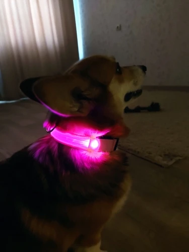 Хороший ошейник, подойдёт для мелких и средних собак - регулируется. Светит ярко, 3 режима. Удобен при прогулке в тёмное время суток, особенно по дороге. Бонус - люди обращают внимание.