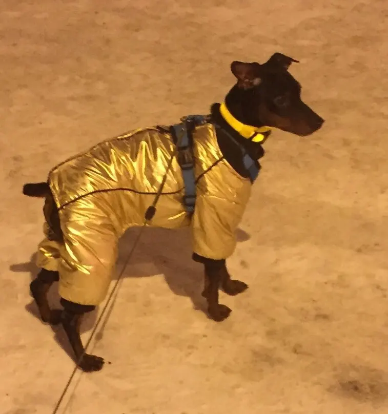 просто супер, шло правда долго, но вещь классная! на веймаранера 2,5 года хl прям идеально. выбрала желтый под цвет его глаз. потом добавлю еще фото....