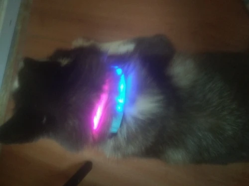 Очень хороший ошейник, регулируется , светится ярко. Три режима подсветки. Очень довольна) спасибо продавцу,рекомендую !!!