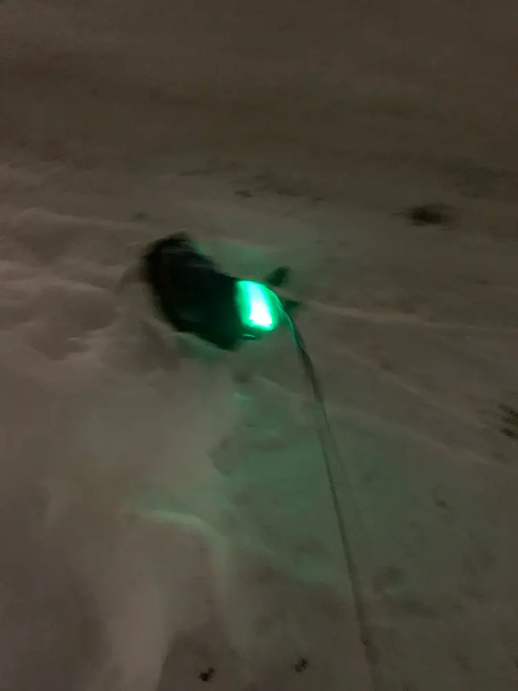 Для сырой погоды или снега не подойдёт. Контейнер с батарейкой пластиковый с отверстиями ни как не защищён от влаги. Светодиод один, по длине ошейника свет распространяется спомощью проводника. В темноте достаточно ярко.