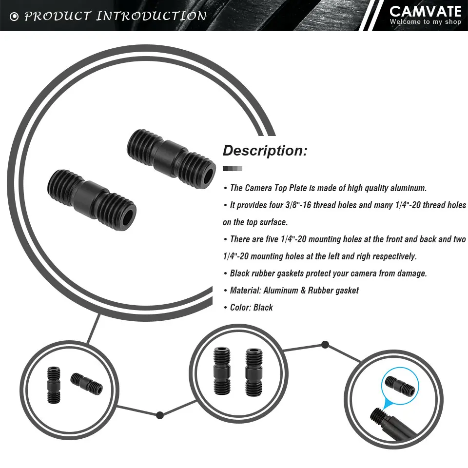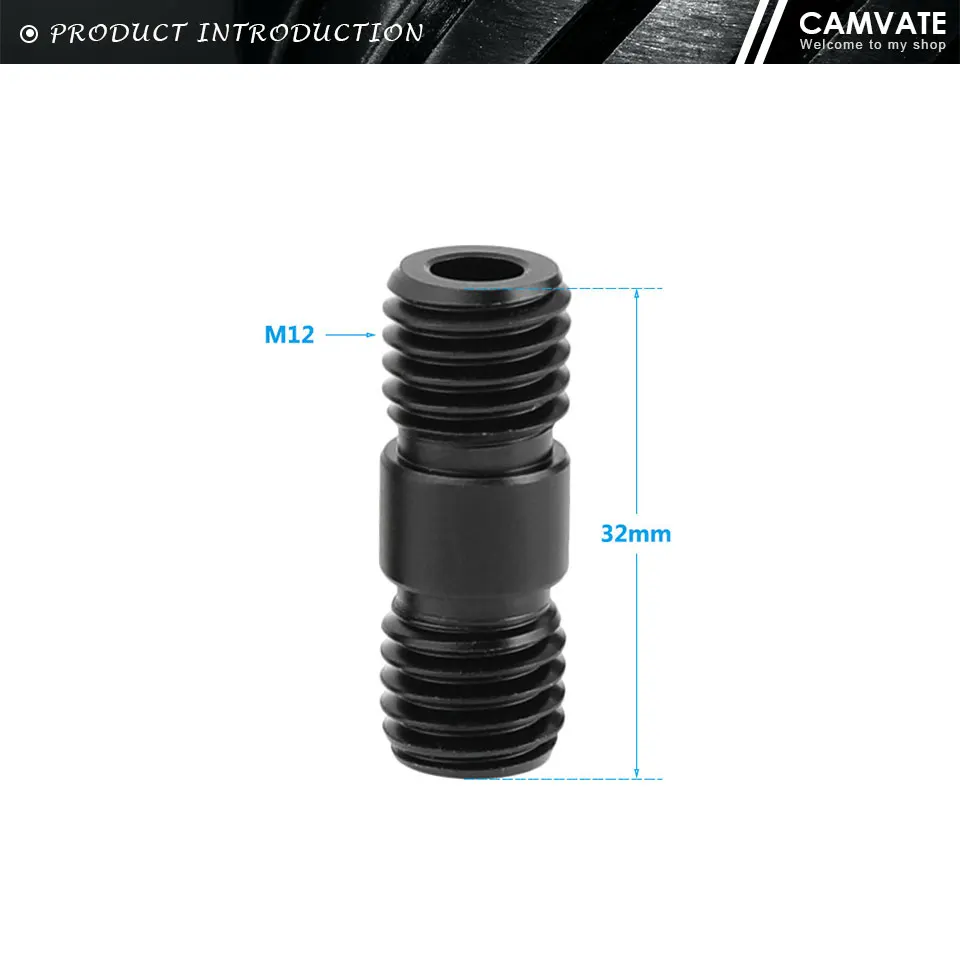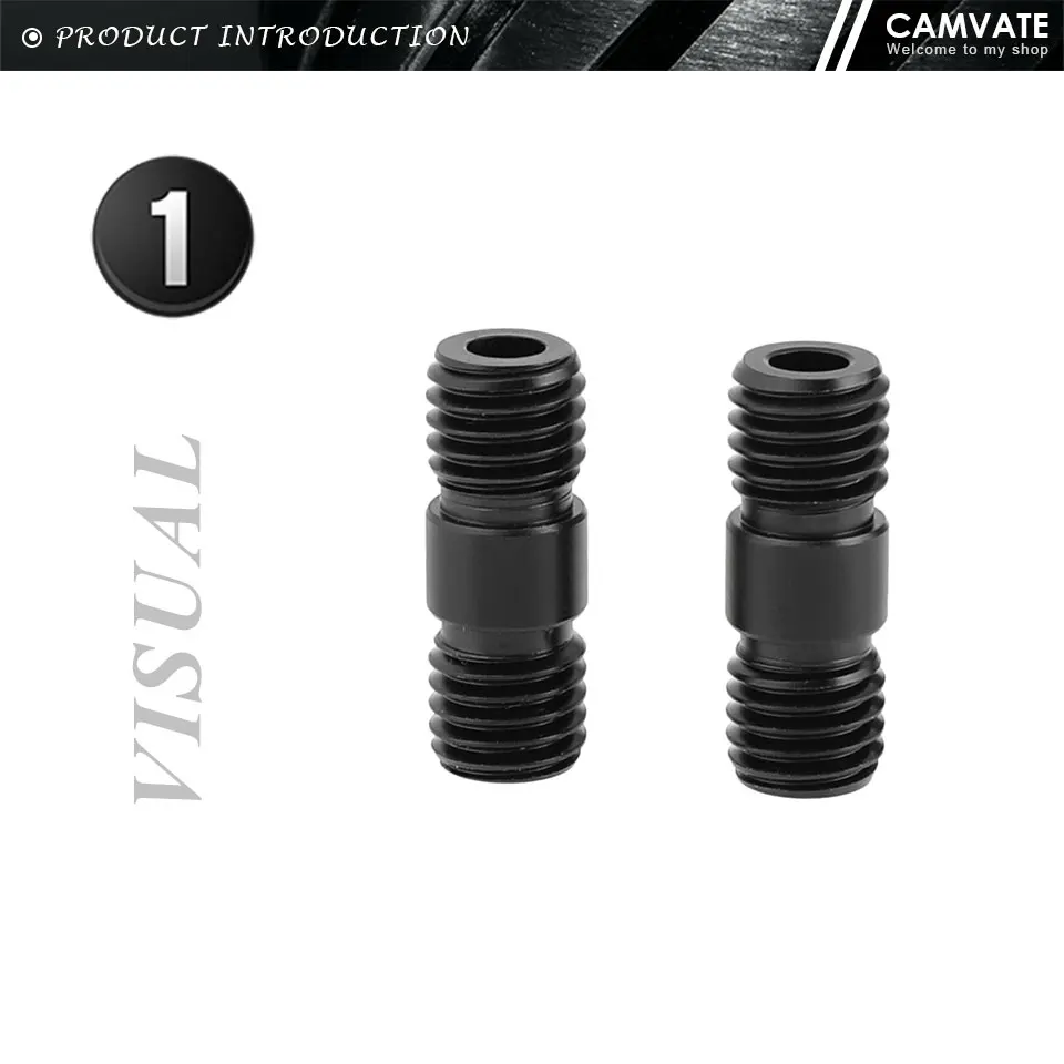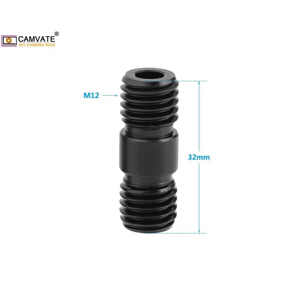Удлинительный соединитель CAMVATE, 2 шт., резьбовой стержень M12 (черный) для DSLR-камеры, опорный стержень 15 мм (резьба M12)