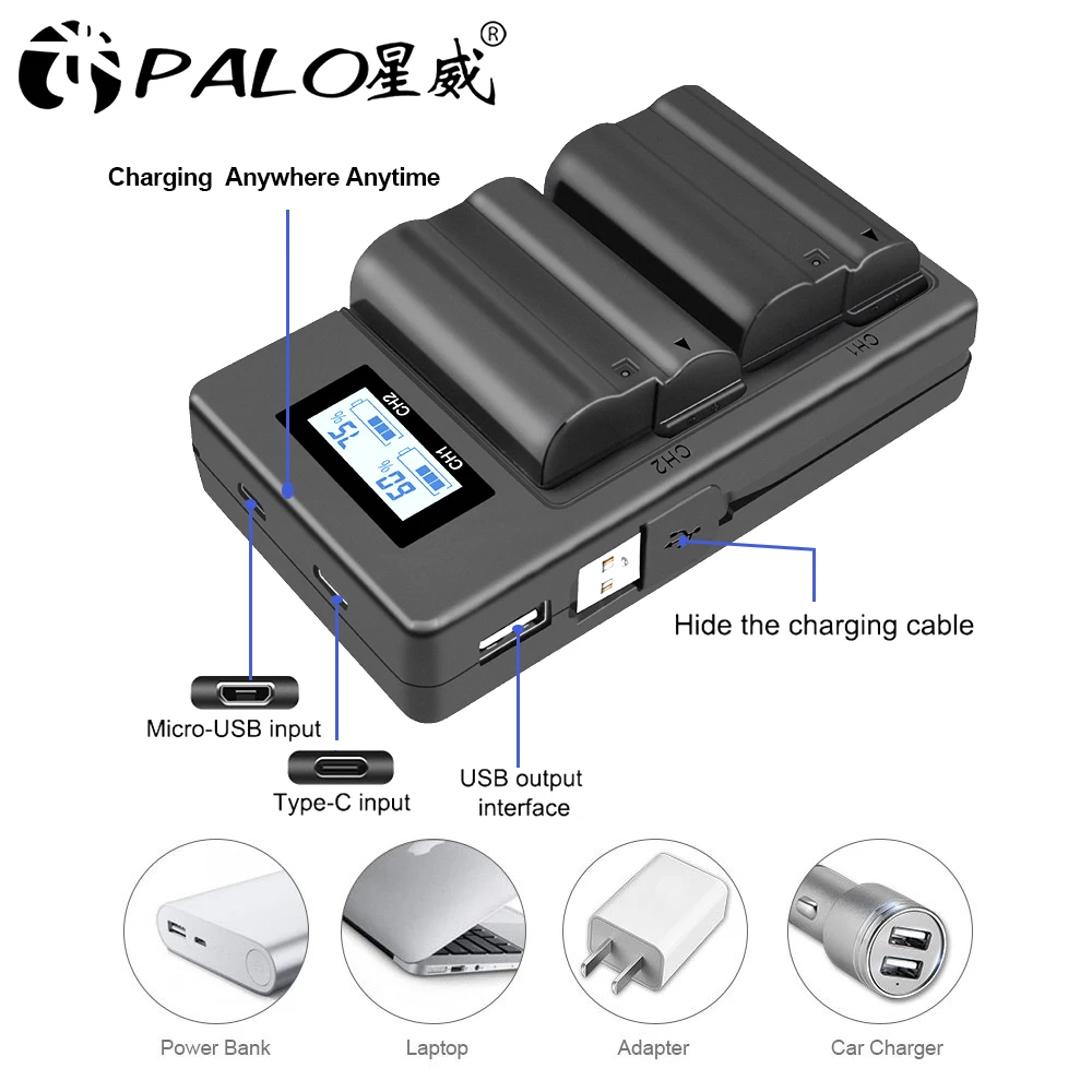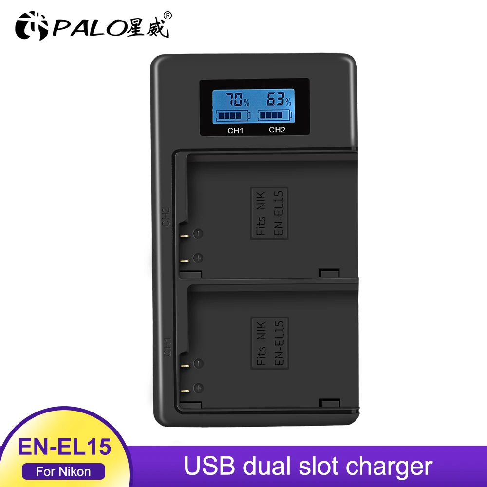 Двойное зарядное устройство PALO EN EL15, ENEL15, для Nikon D500,D600,D610,D750,D7000,D7100,D7200,D800,D800E,D810,D810A v1