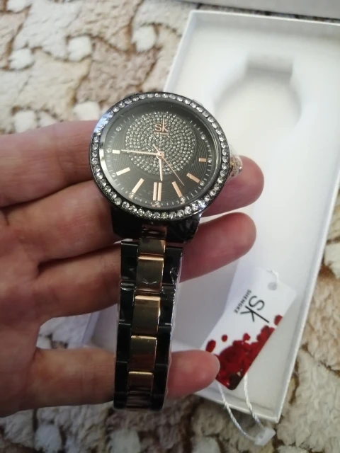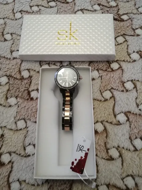 Часы Shengke женские кварцевые, брендовые Роскошные наручные, со стразами, розовое золото, 2019