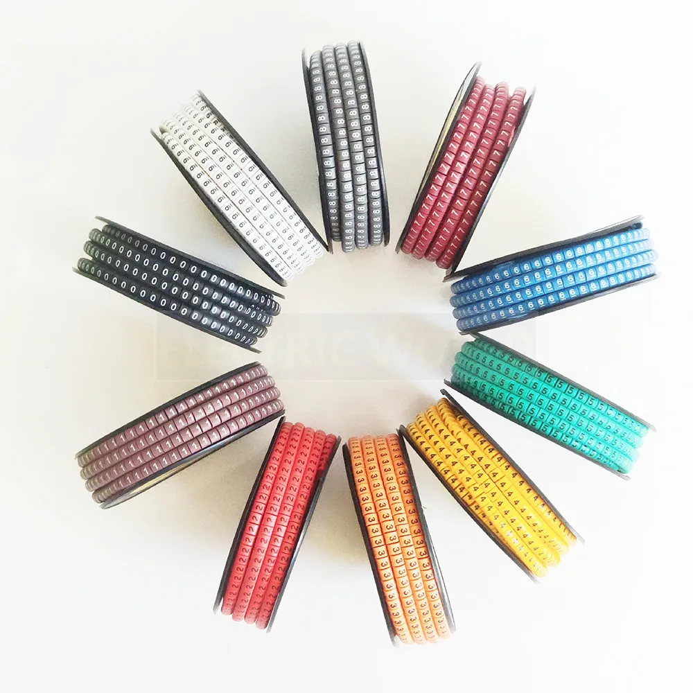 Кабельные маркеры EC-0, EC-1, EC-2, Маркер кабельной проводки, цифры от 0 до 9, размер кабеля 1,5 кв. мм, разные цвета, маркеры для кабеля из ПВХ, маркеры для изоляции