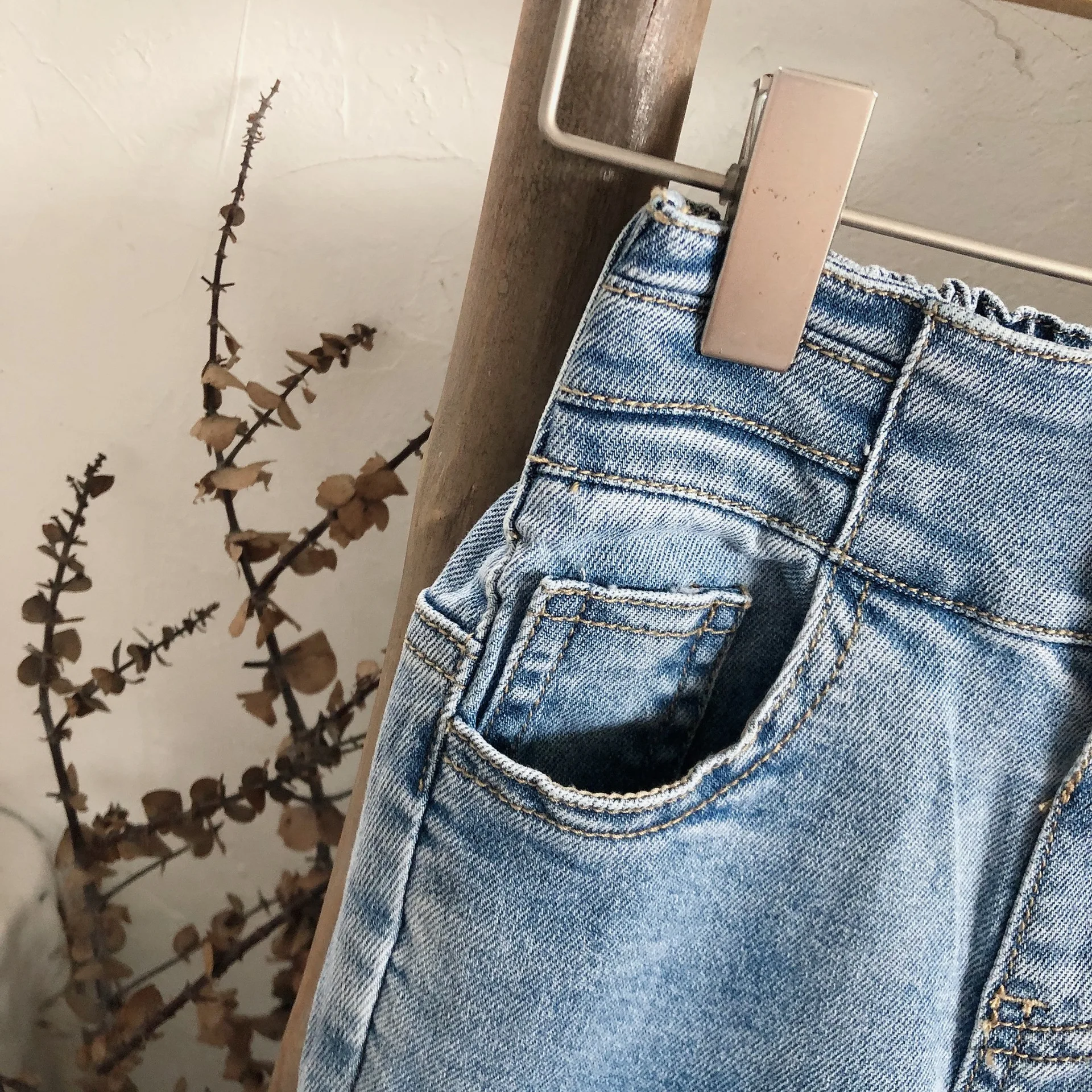 Новинка; Расклешенные джинсы с завышенной талией для девочек; Однотонные джинсы с завышенной талией для малышей; Леггинсы для девочек; Одежда для маленьких девочек; Детские леггинсы