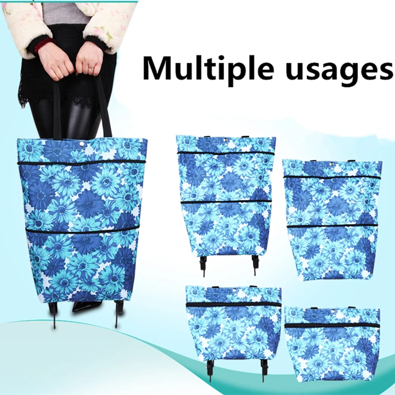 2 в 1 Складная Модная складная сумка для покупок с 2 колесами, порт...