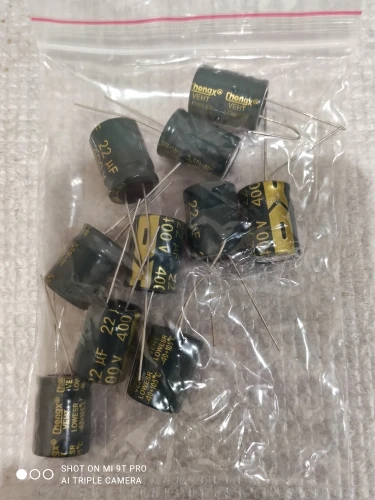 Алюминиевый электролитический конденсатор frekuensi tinggi, 22 мкФ, 400 В, 13 х17 мм, 10 шт.