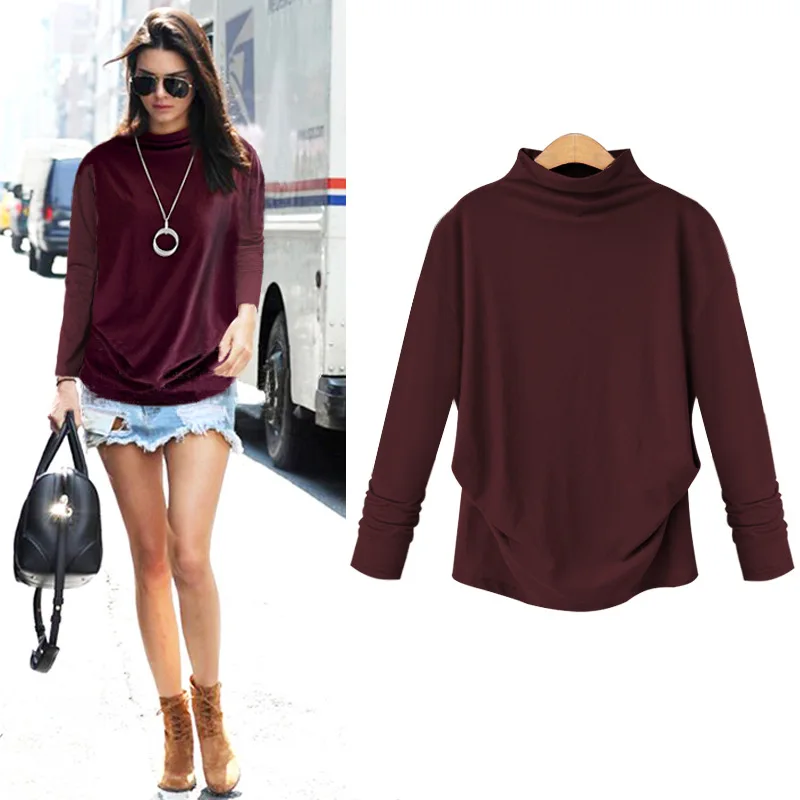 Осенние женские топы, модная женская хлопковая блузка в Корейском стиле, блузка с длинным рукавом и высоким воротником, женская блузка большого размера