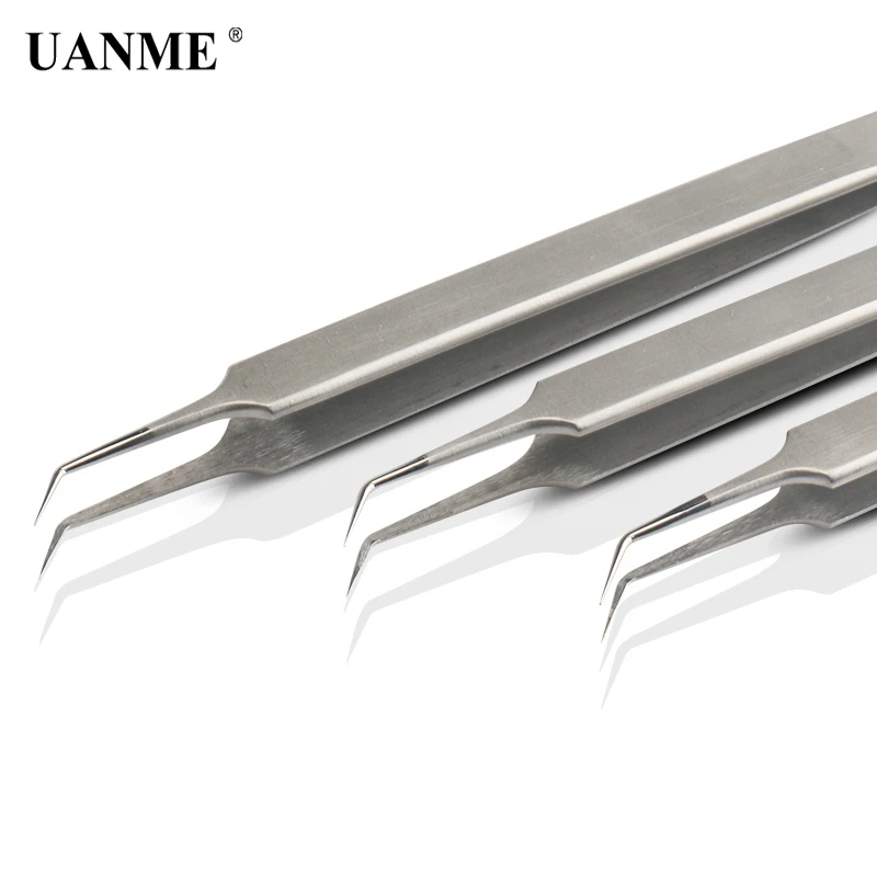 Пинцет UANME, сверхточный, изогнутый, из нержавеющей стали, с тонким наконечником
