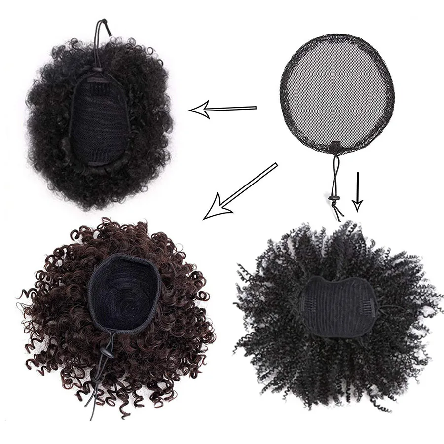Сетчатая основа для хвоста позволяет сшить любые волосы, которые вы хотели бы использовать для своего хвоста. Вы можете сделать конский хвост таким, как вы хотите, чтобы он выглядел.Шиньон может быть использован для создания африканского пышного хвоста с кулиской, что делает короткие кудрявые волосы пучком.